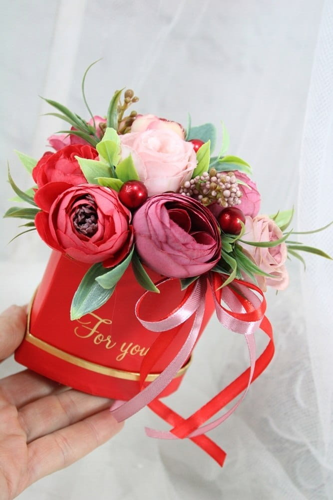 Ten wyjątkowy walentynkowy box z kwiatów to symbol namiętności, romantyzmu i głębokich uczuć, idealny prezent na Walentynki, rocznicę lub jako piękne „Kocham Cię” bez okazji.