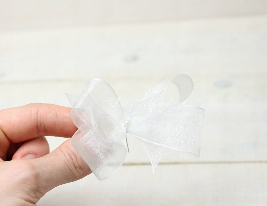 Dodatkowo na innej aukcji jest możliwość do kotyliona dokupić szyfonową kokardkę z perełką na