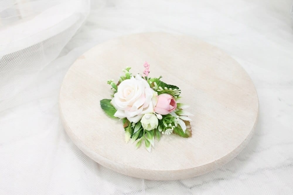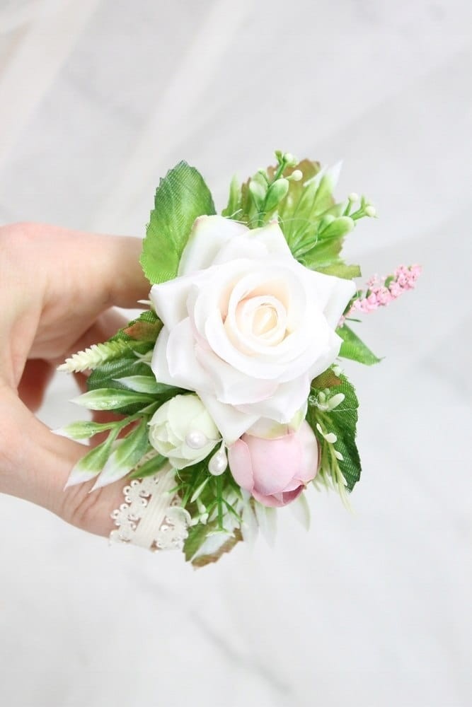 Bukiecik na rękę kotylion ślubny korsarz kwiatowy jasny róż
