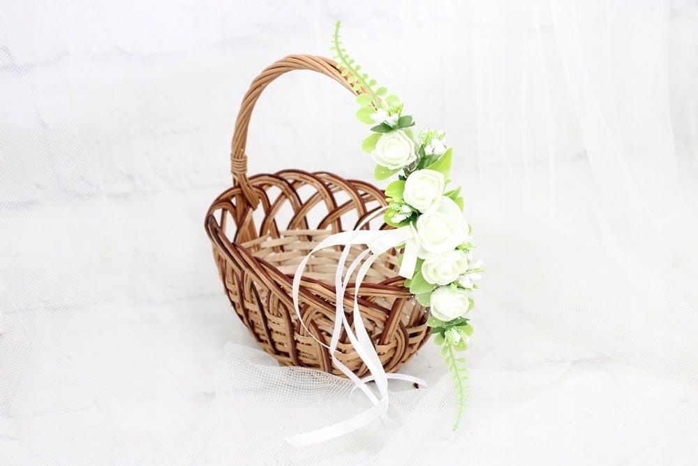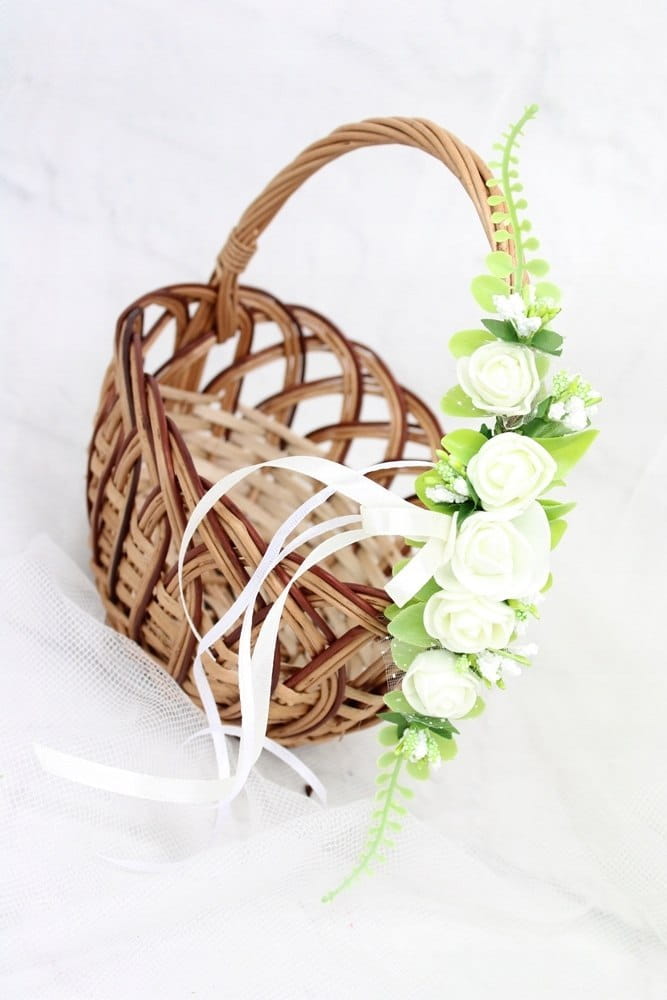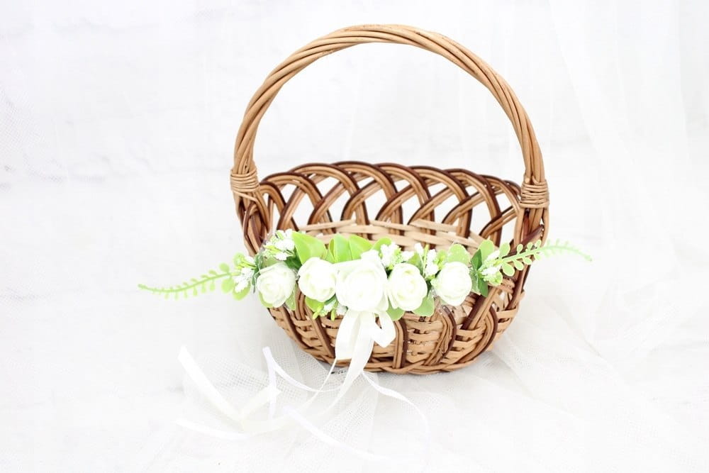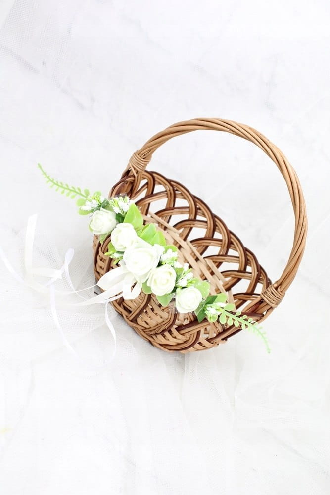 Zamocowanie dekoracji na koszyku jest niezwykle proste i intuicyjne, cieńszą i krótszą tasiemkę należny zawiązać obok uchwytu lub z przodu koszyczka.