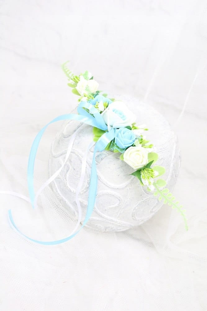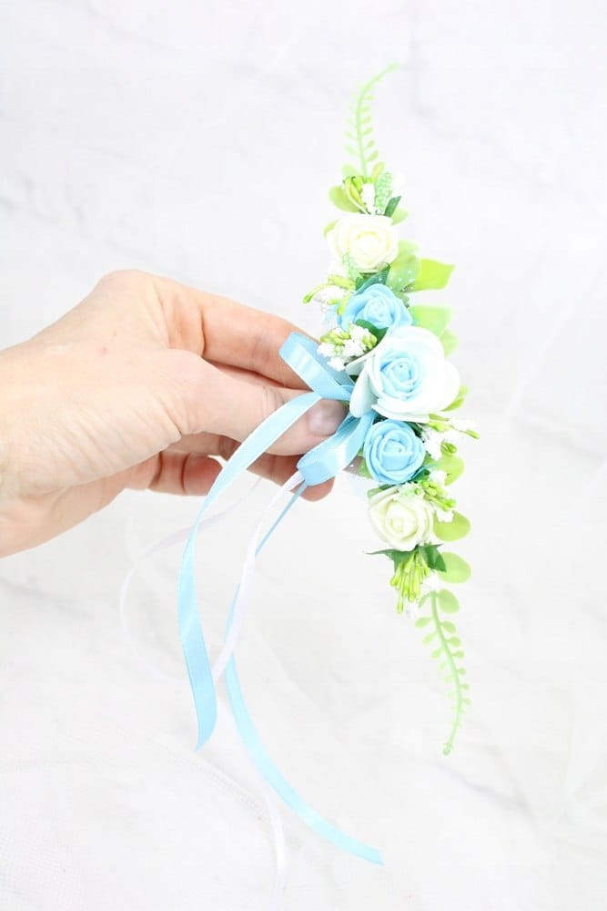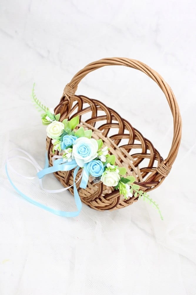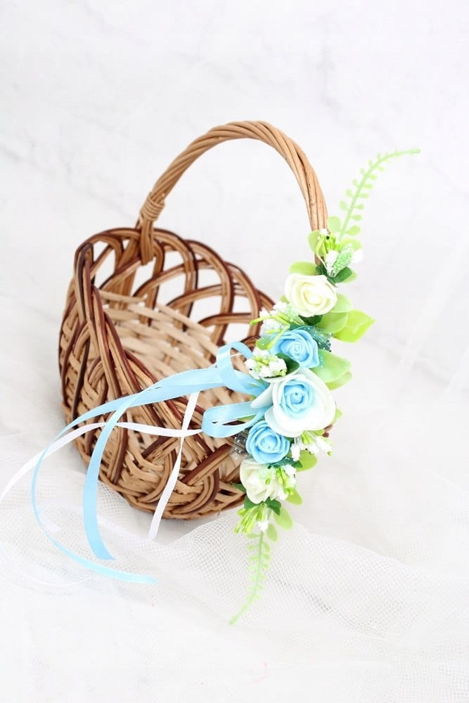 Dekoracja na koszyk wielkanocny delikatny stroik gałązka różyczki NIEBIESKI