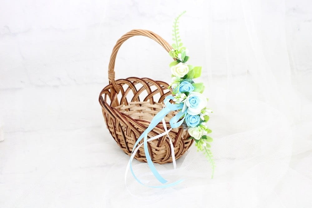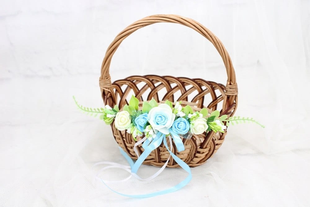 Zamocowanie dekoracji na koszyku jest niezwykle proste i intuicyjne, cieńszą i krótszą tasiemkę należny zawiązać obok uchwytu lub z przodu koszyczka.