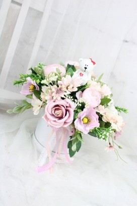 Elegancka i urocza kompozycja kwiatowa w pudełku typu flower box, utrzymana w odcieniach różu. Dopełnia ją ceramiczny miś, idealny jako symbol ciepła i radości.