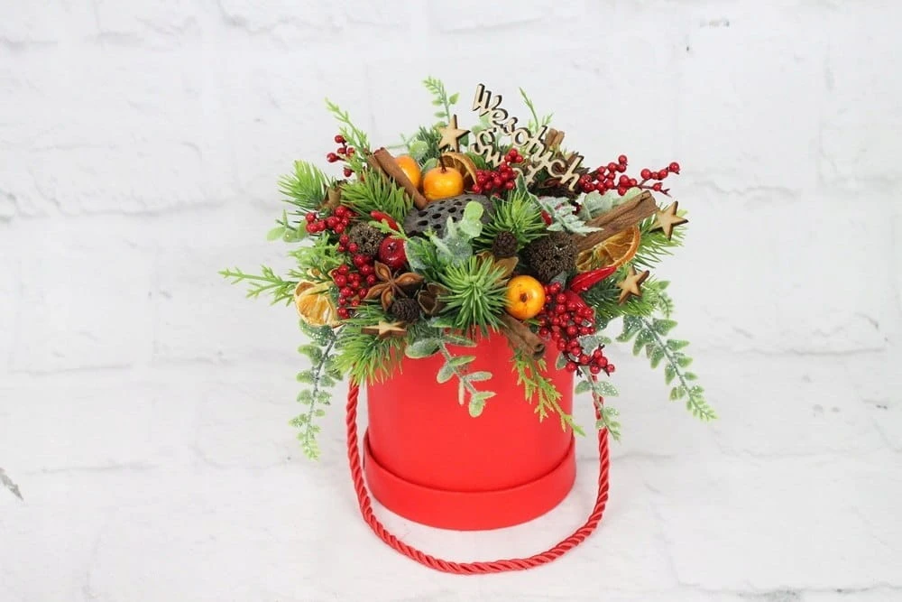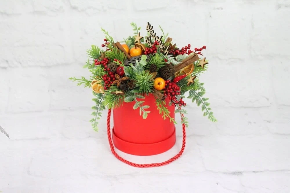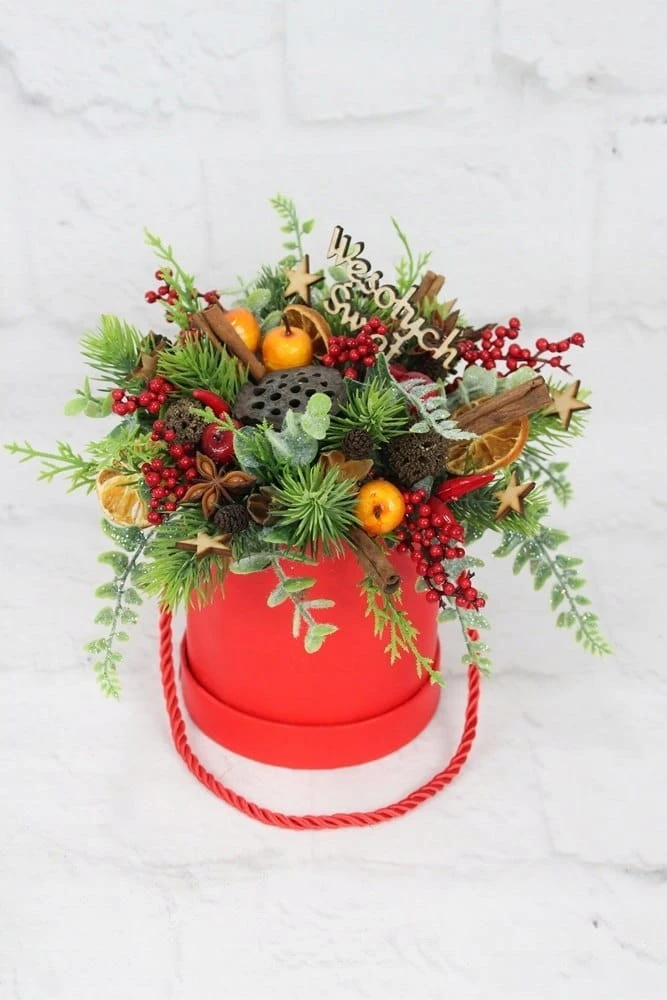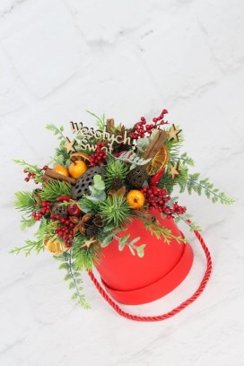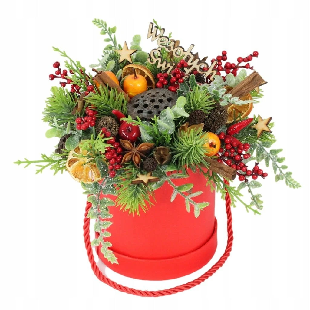 Flower box świąteczny stroik CZERWONY dekoracja domu