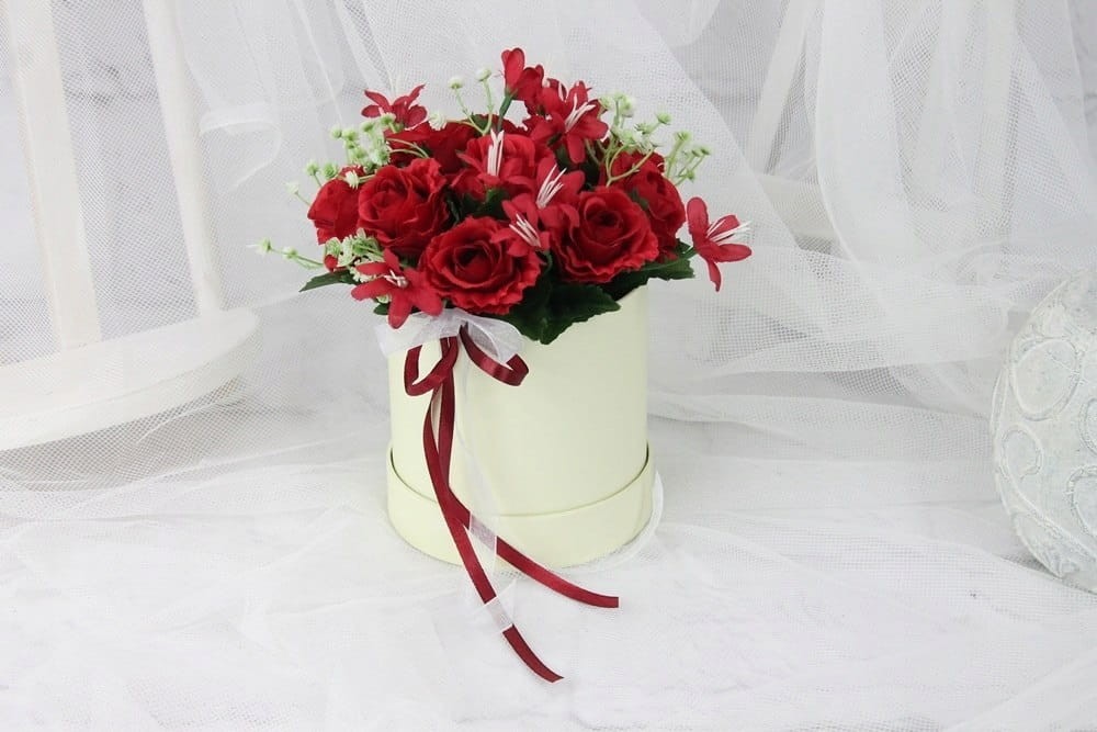 Wyjątkowa kompozycja kwiatowa w eleganckim pudełku pełna pachnących czerwonych róż.