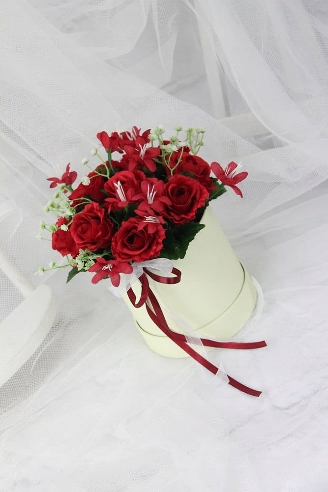 Flowerbox pachnące róże w pudełku prezent CZERWIEŃ