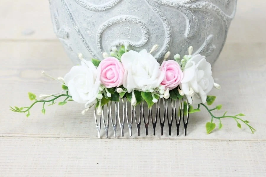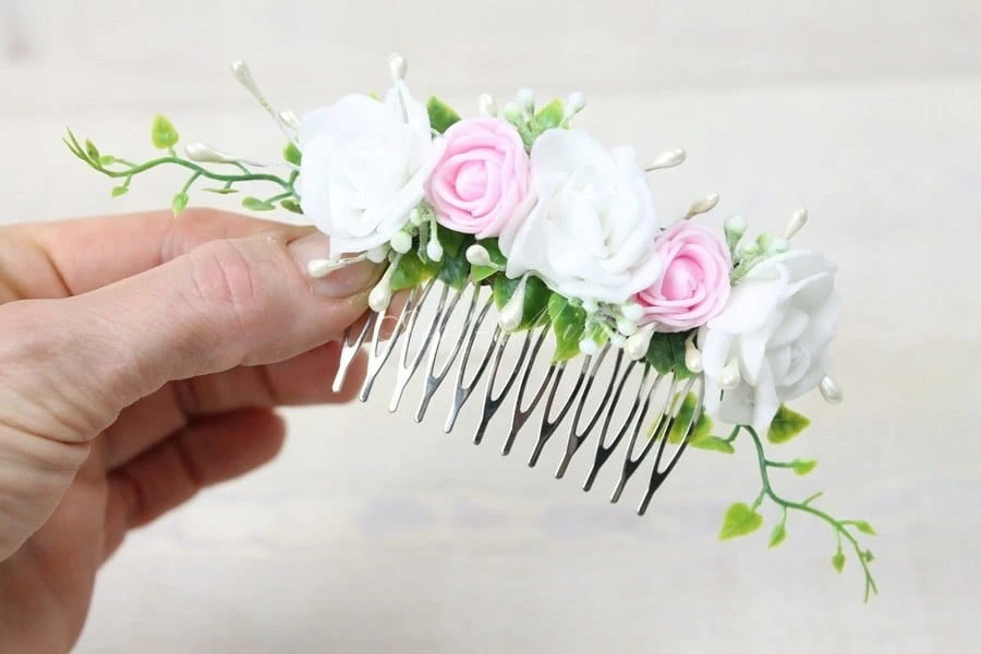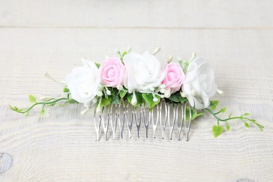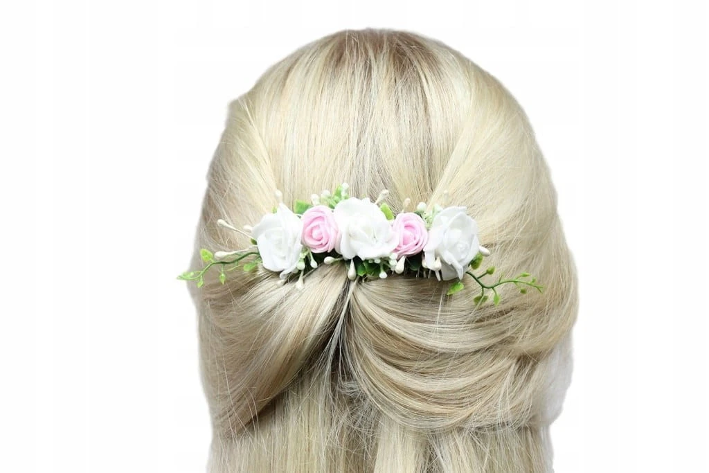 Grzebyk Różyczki do włosów stroik komunia RÓŻOWY