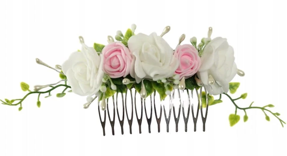 Uroczy grzebyk komunijny, pełen biało różowych różyczek