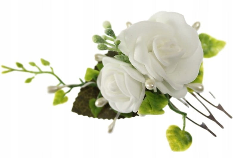 Grzebyk mały Różyczki do włosów ozdoba BIAŁY ślub
