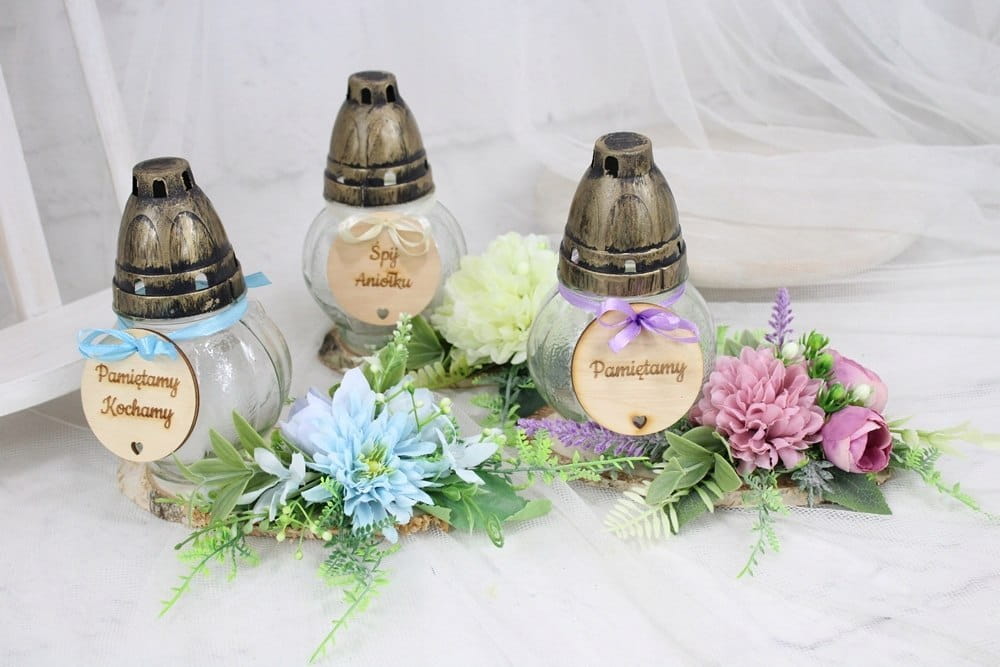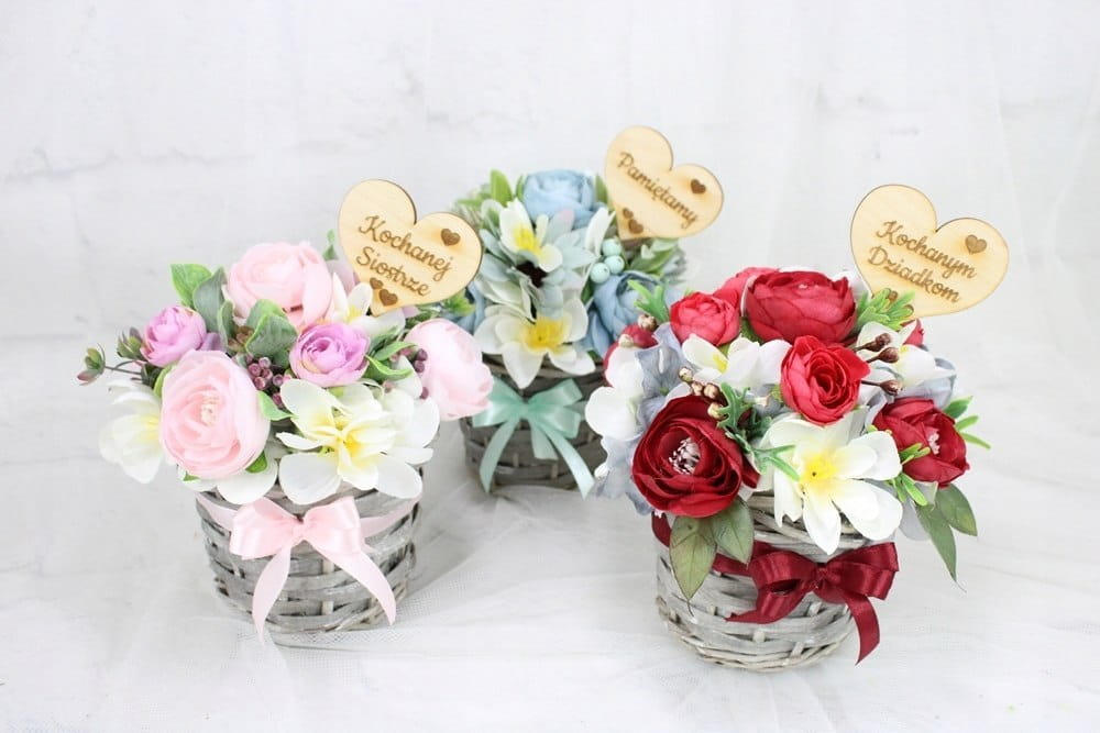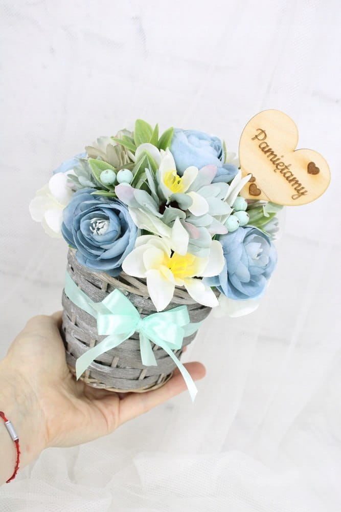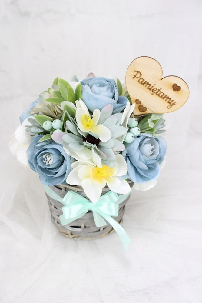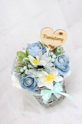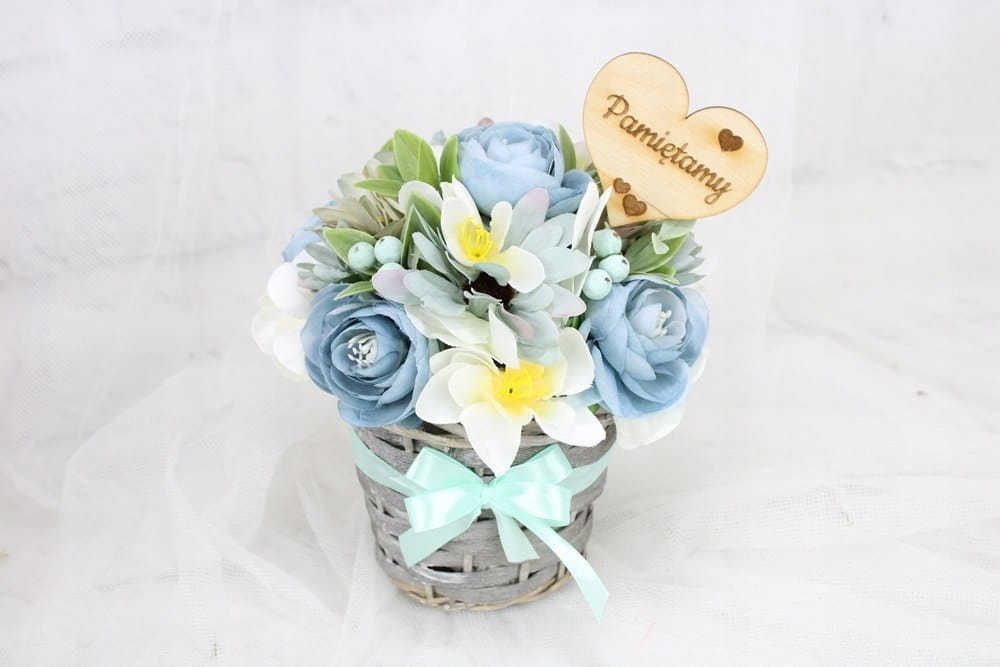 Kompozycje wykonuje ręcznie z tego względu układ czy rodzaj ozdób i dodatków może się nieco różnić od zdjęć. Zawsze jednak zostaje zachowany styl i kolorystyka.
