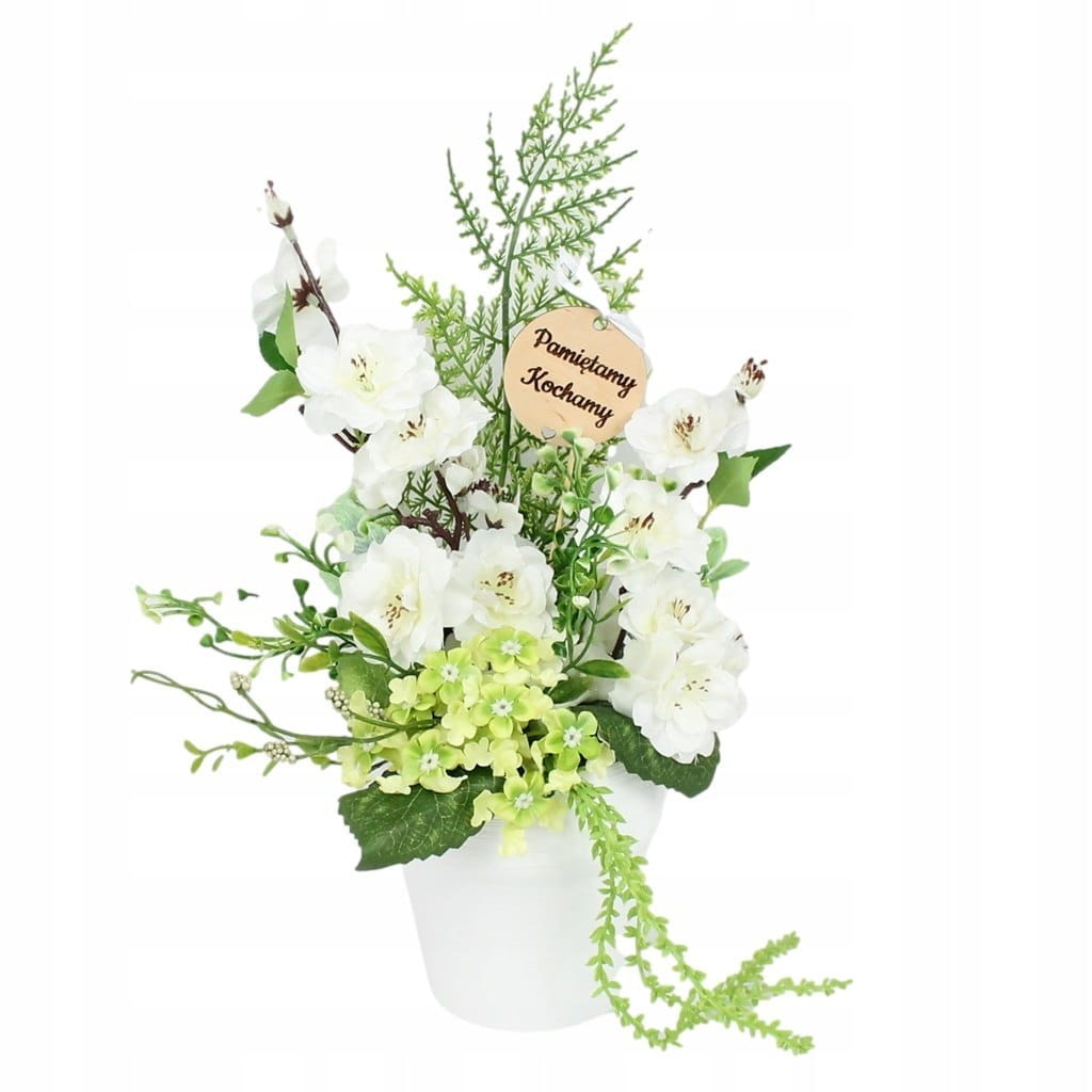 Niezwykle piękna i oryginalna kompozycja nagrobna, wykonana z wysokiej jakości sztucznych kwiatów oraz podstawy z plastikowej obciążonej osłonki.