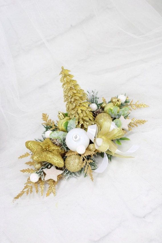 Kompozycja stroik świąteczny na stół złoty ozdoba domu choinka