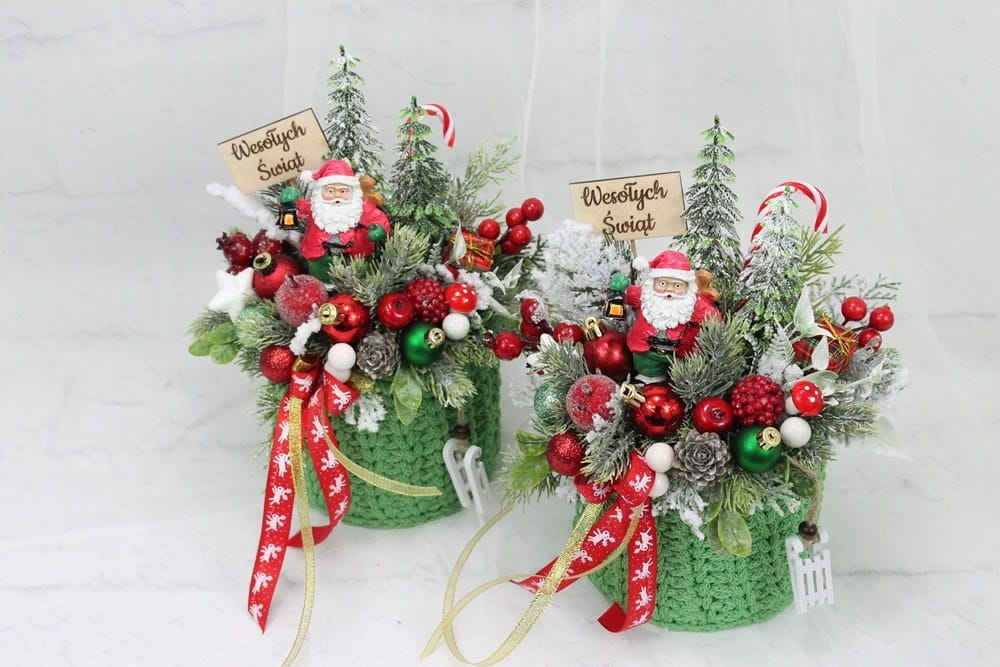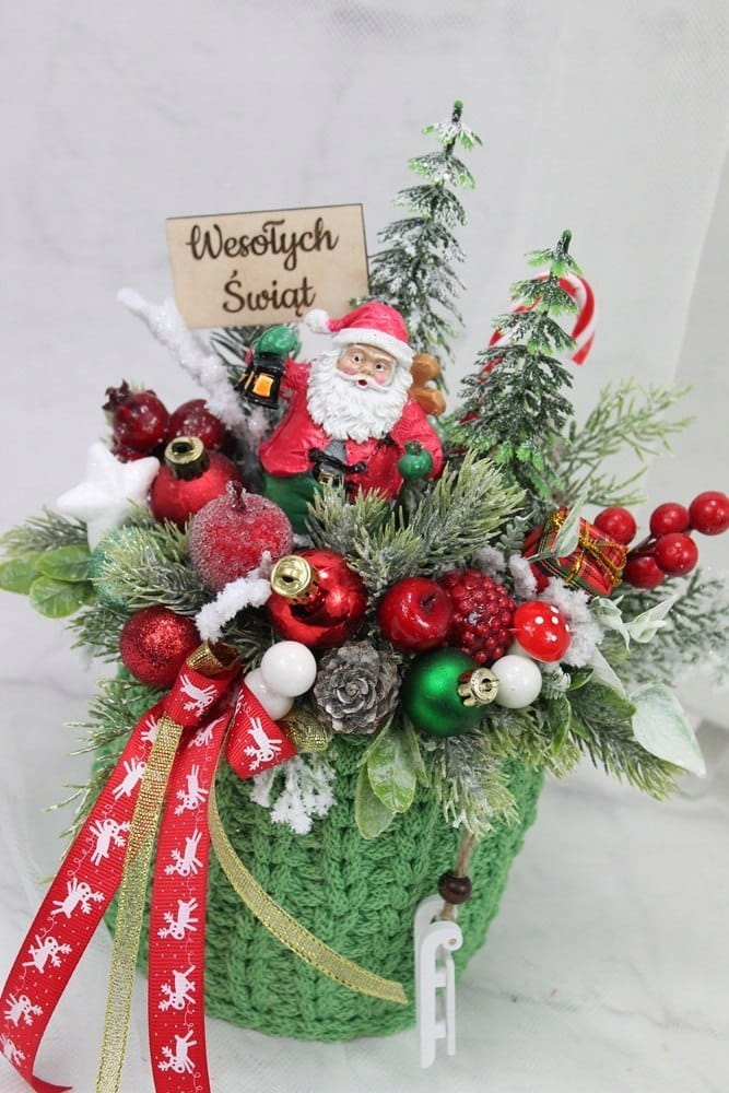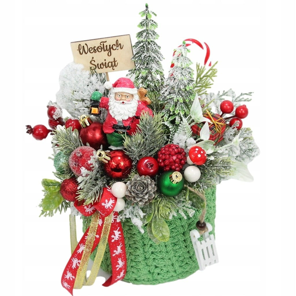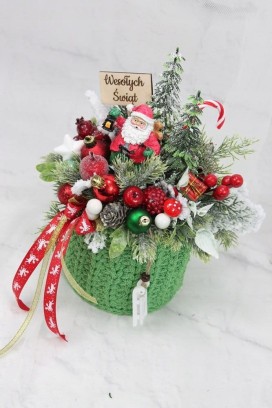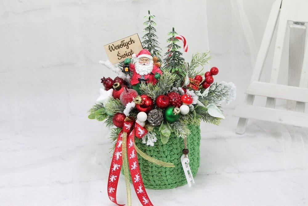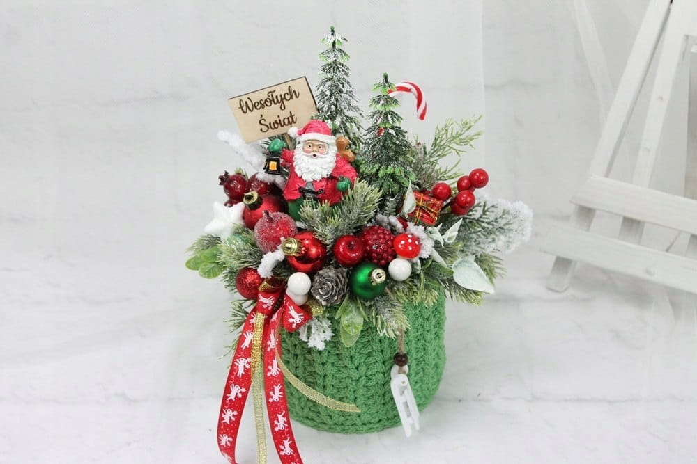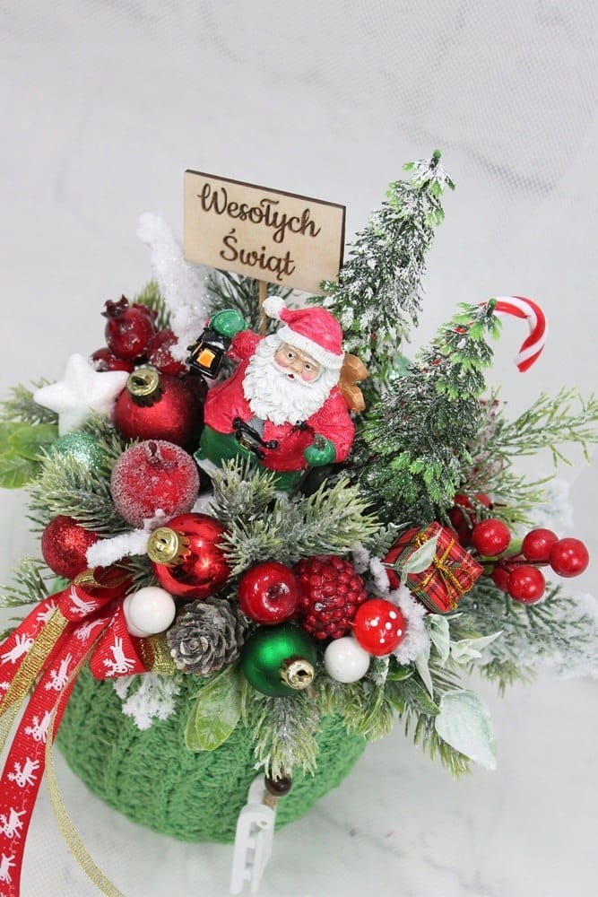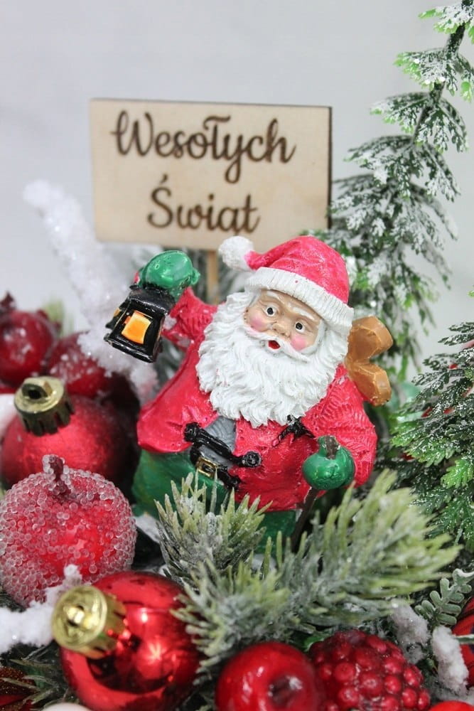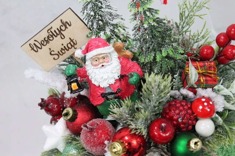 Udekorowana naturalnie wyglądającymi sztucznymi gałązkami oraz pięknymi świątecznymi dodatkami, idealnie wpisująca się w trendy zimowe. Niezwykłego uroku dodaje jej ceramiczny mikołaj.