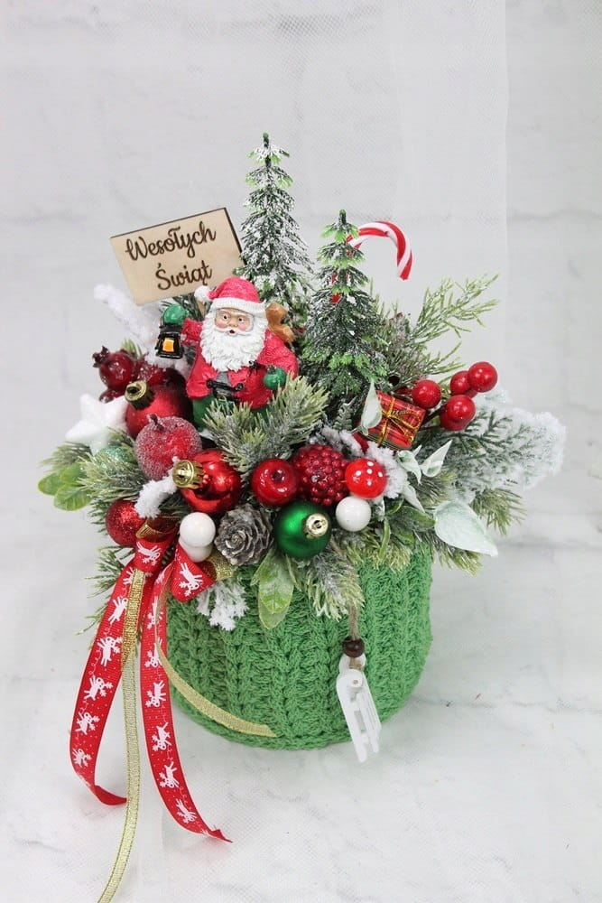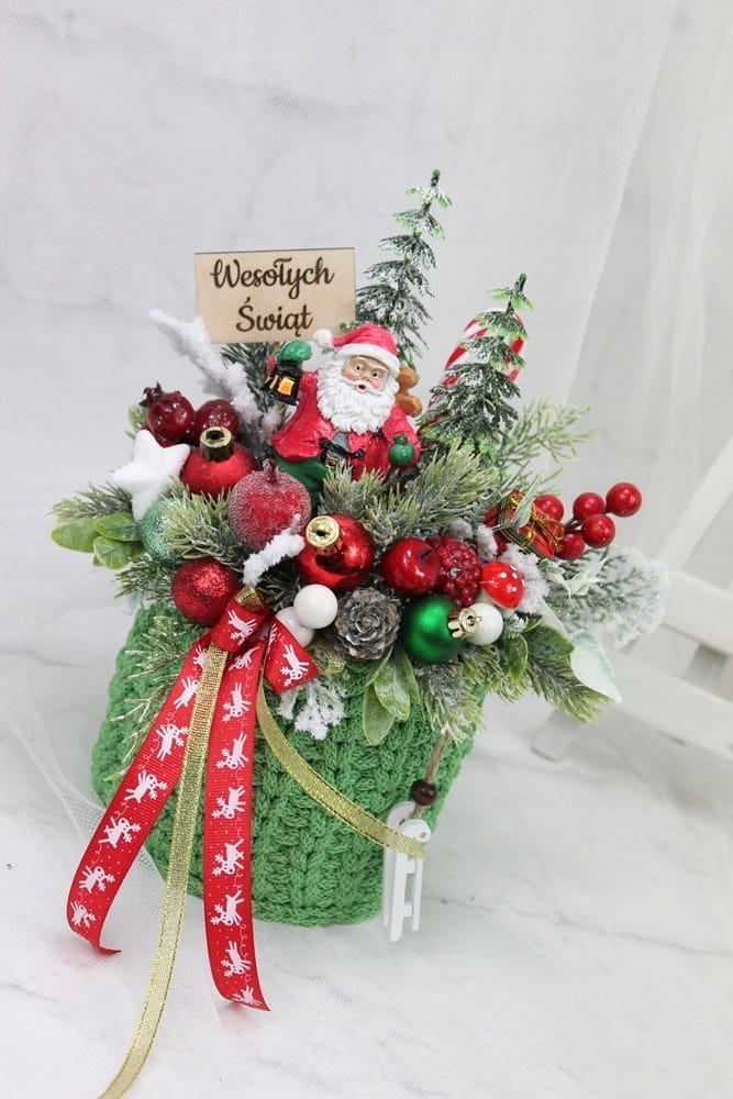 Oryginalna i niepowtarzalna zimowa kompozycja wykonana w pudełku otulonym zimowym sweterkiem.
