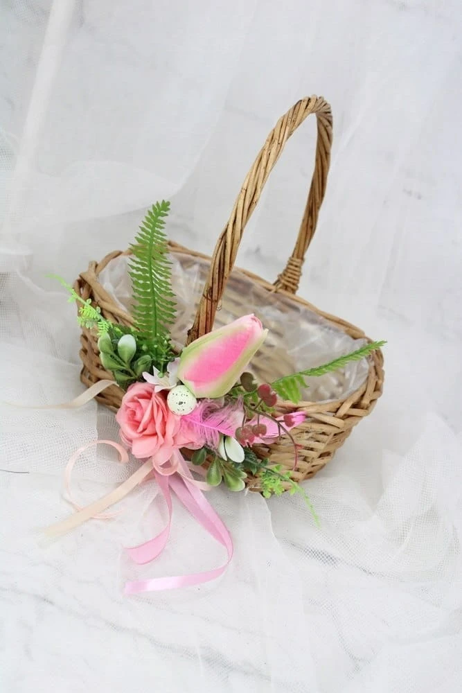 Koszyk na święconkę wielkanocny dekorowany tulipany osłonka różowy