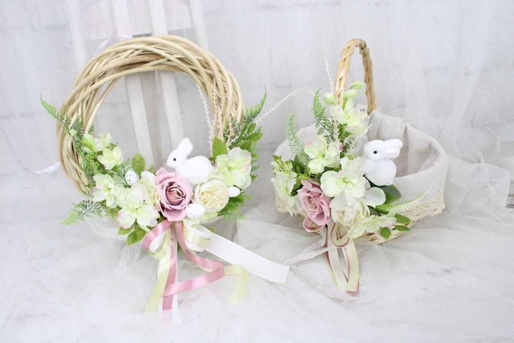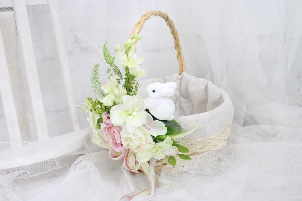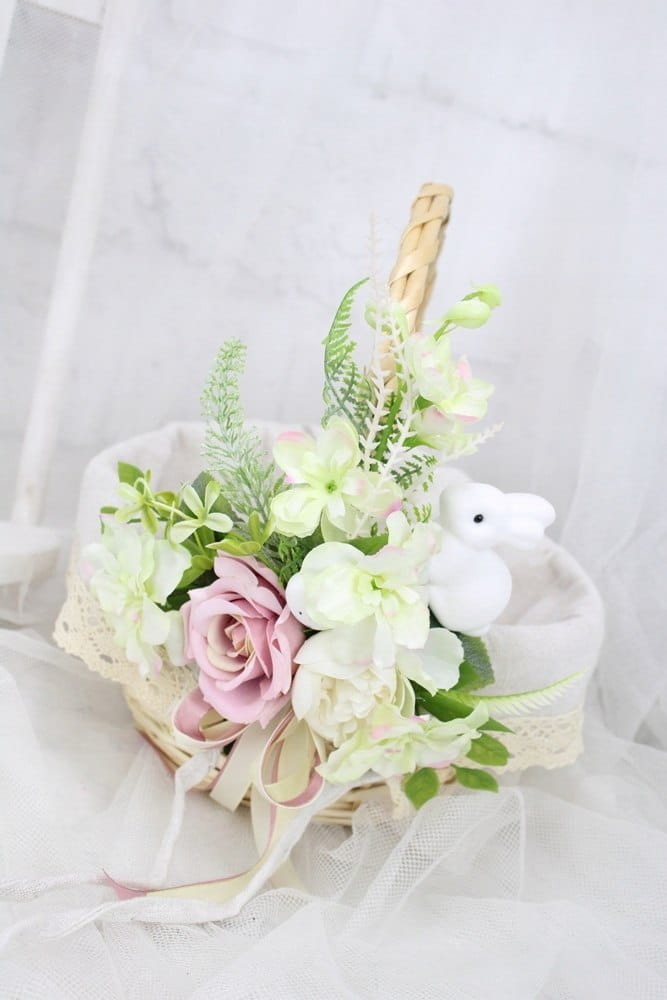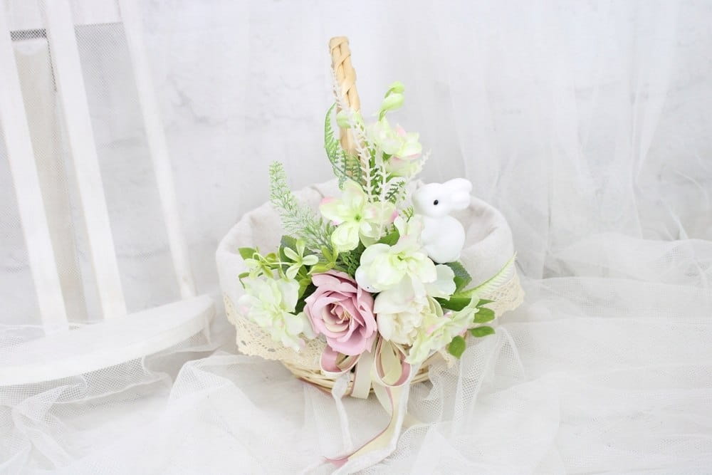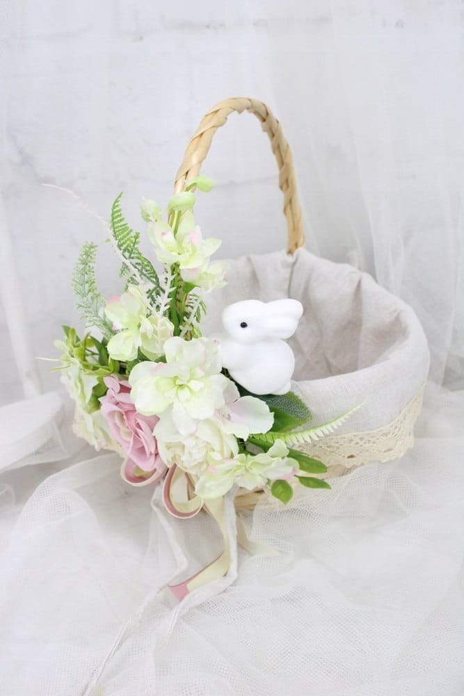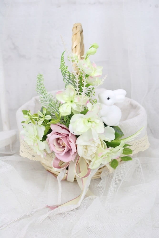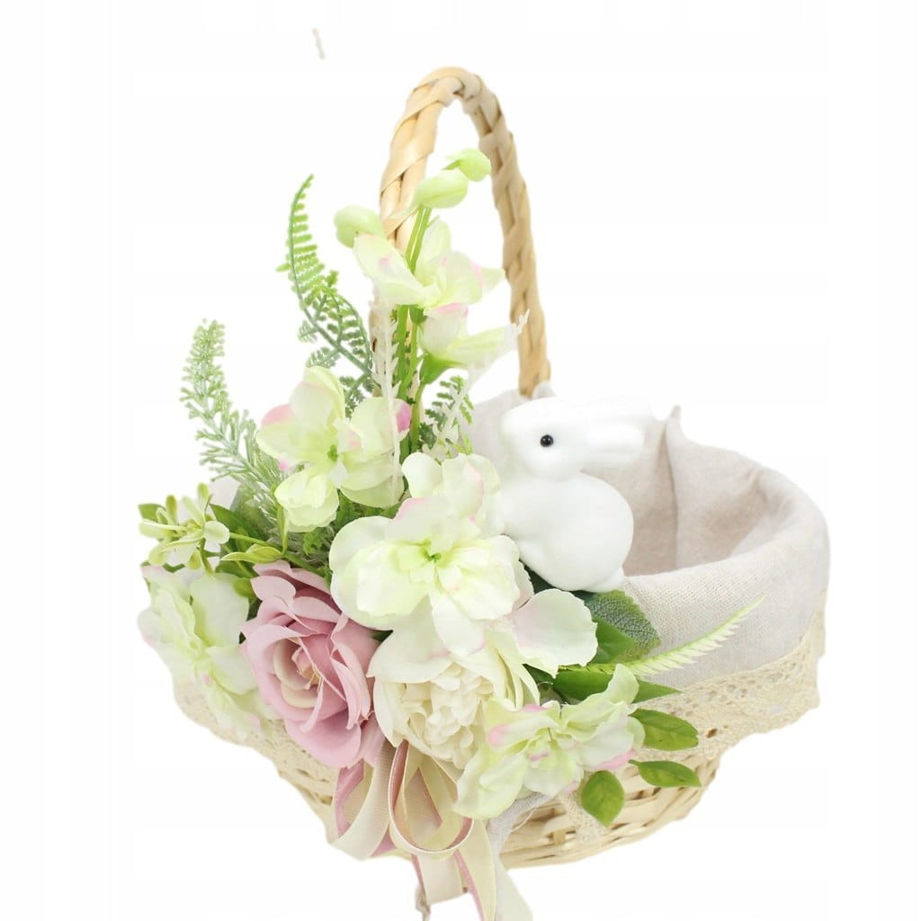 Koszyk wielkanocny na święconkę udekorowany kwiatami koszyczek ZAJĄCZEK