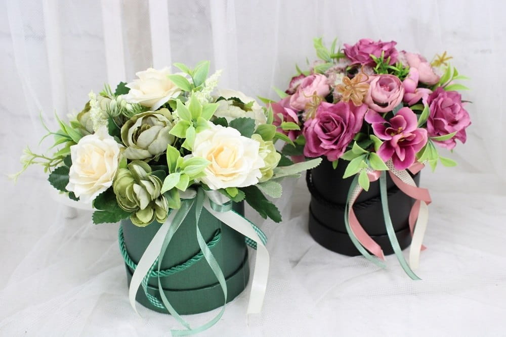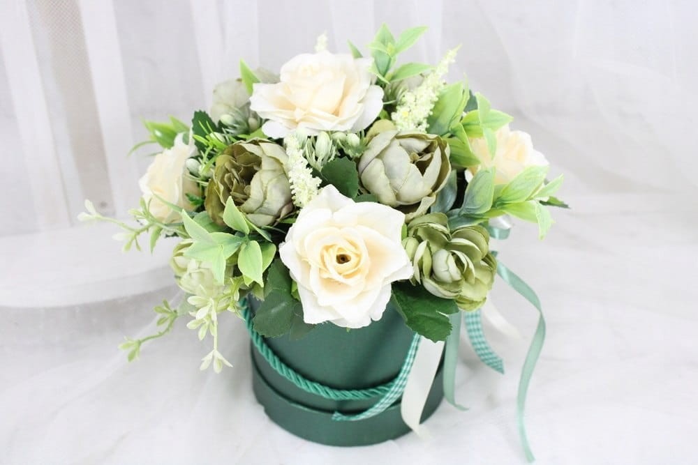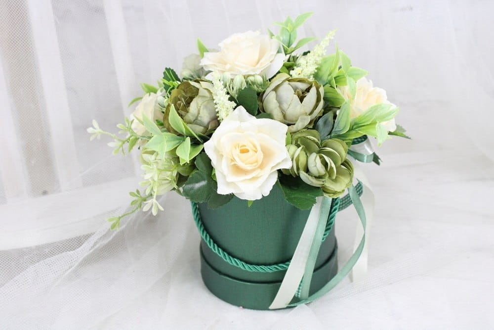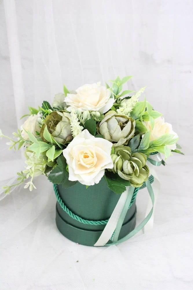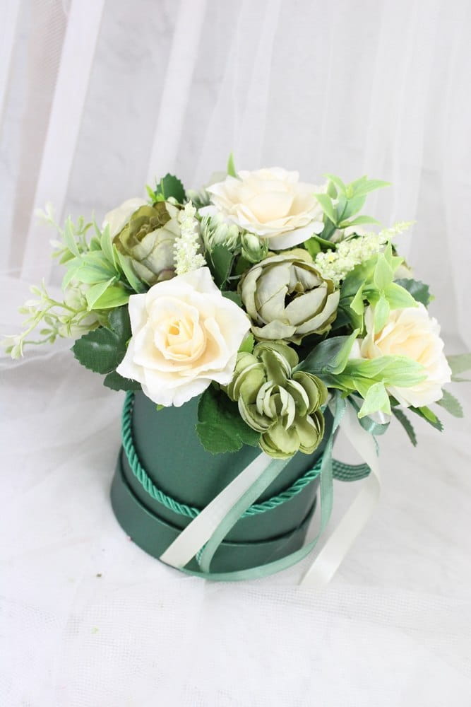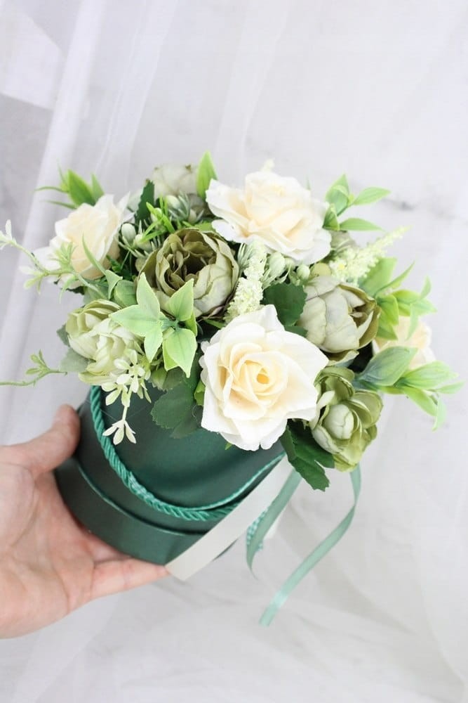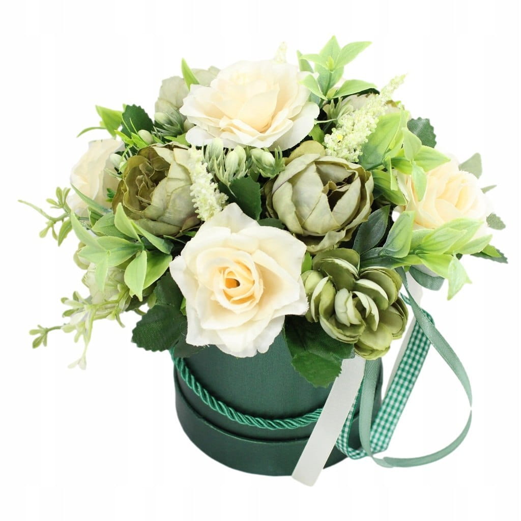 Kwiatowa dekoracja prezent flower box BUTELKOWA ZIELEŃ kwiatowe pudełko
