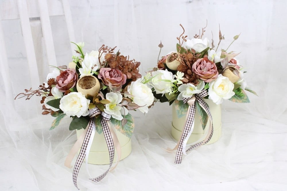 Udekorowana naturalnie wyglądającymi sztucznymi kwiatami, dekoracyjnymi gałązkami oraz pięknymi dodatkami, idealnie wpisująca się w obecne trendy.