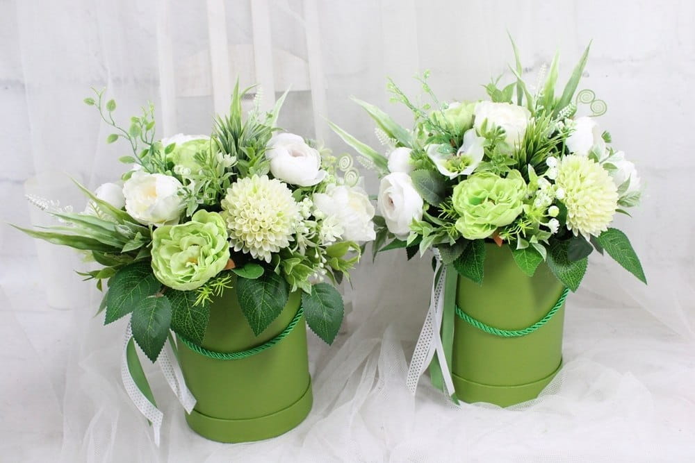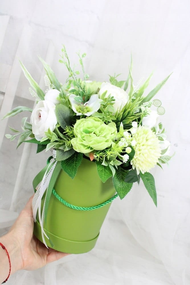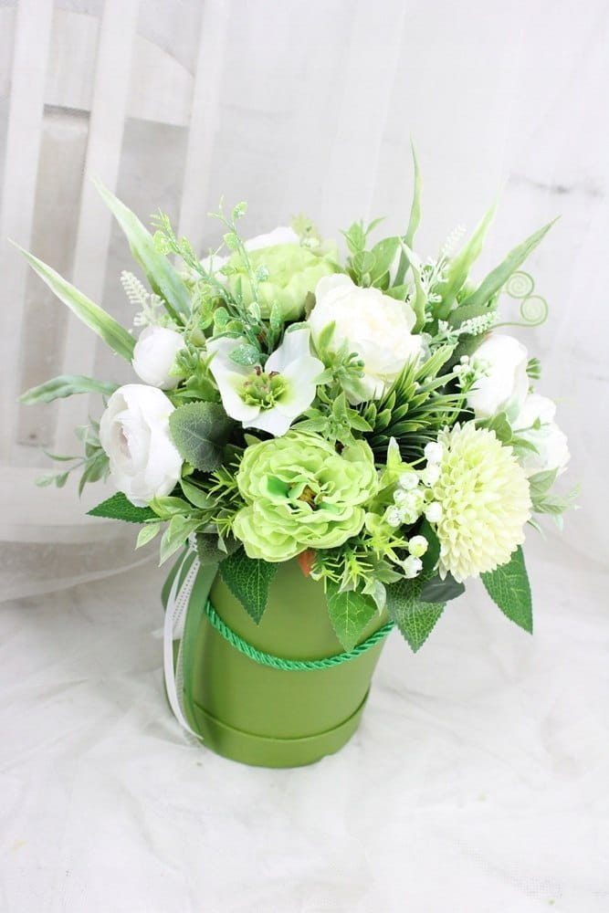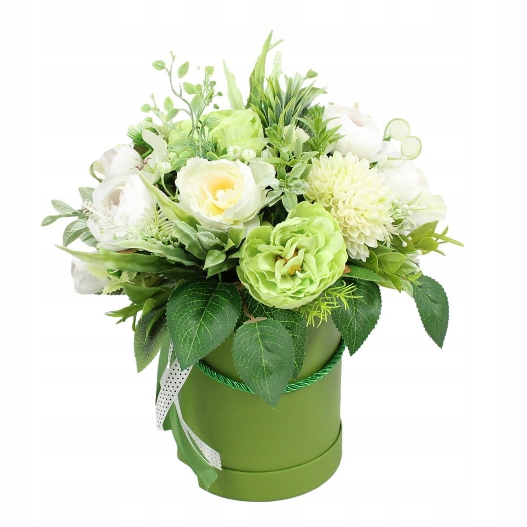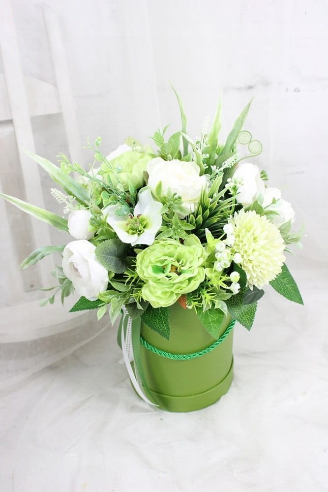 Kwiatowa dekoracja prezent flower box wysoki ZIELEŃ kwiatowe pudełko