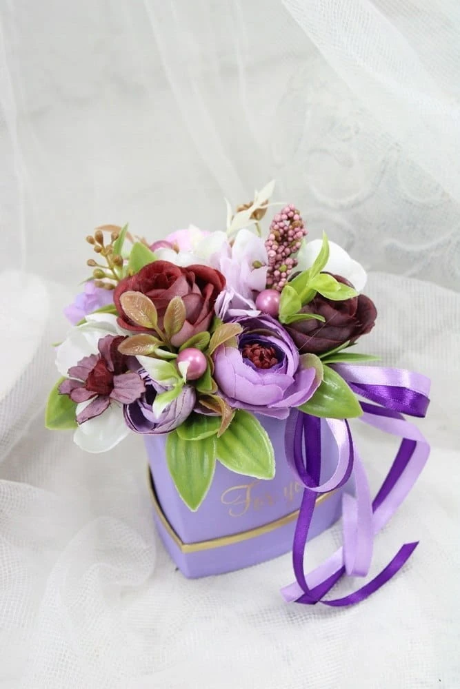 Niewielka lecz urocza i niepowtarzalna kompozycja. Wykonana w pudełku w kształcie serca.
