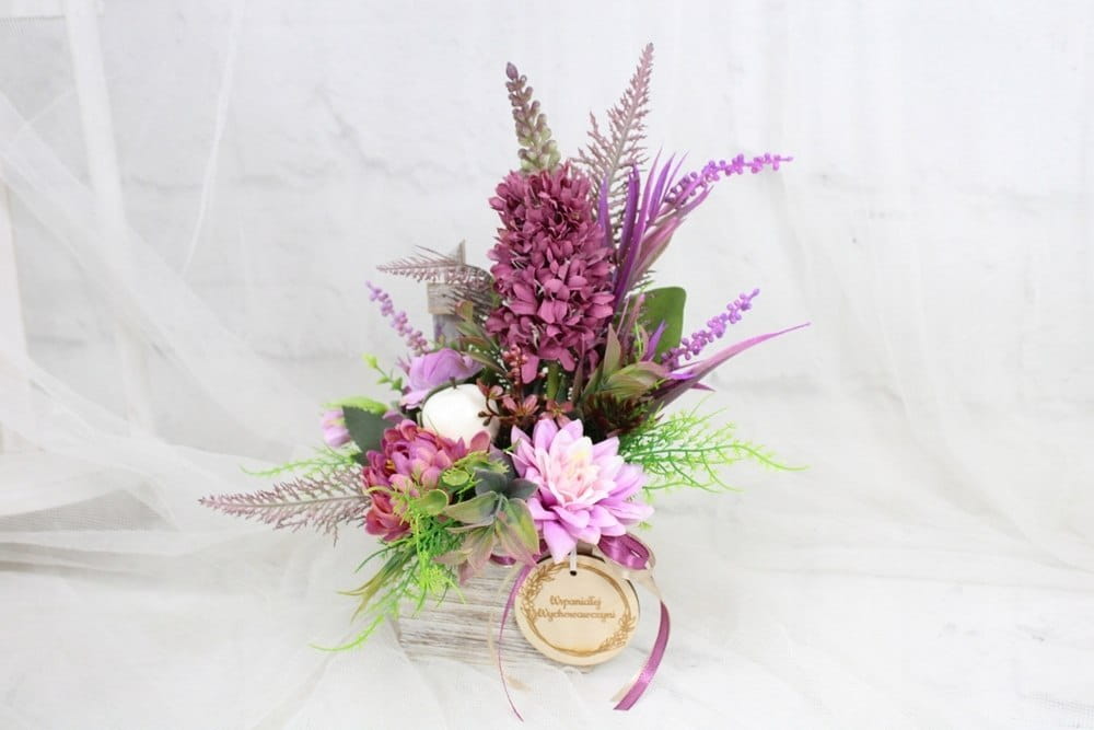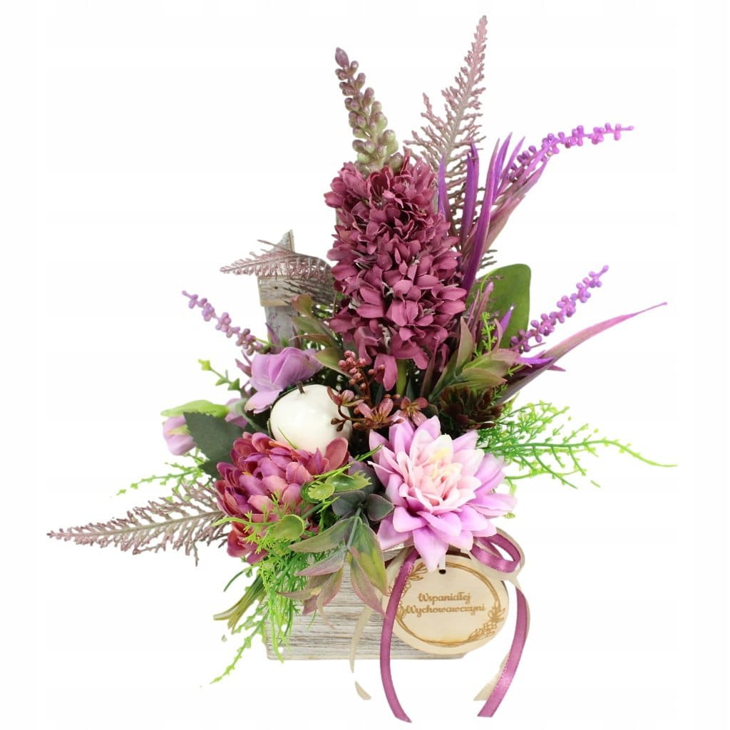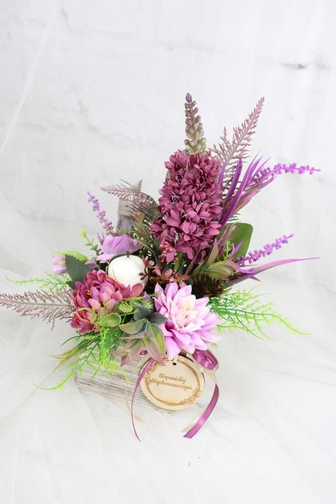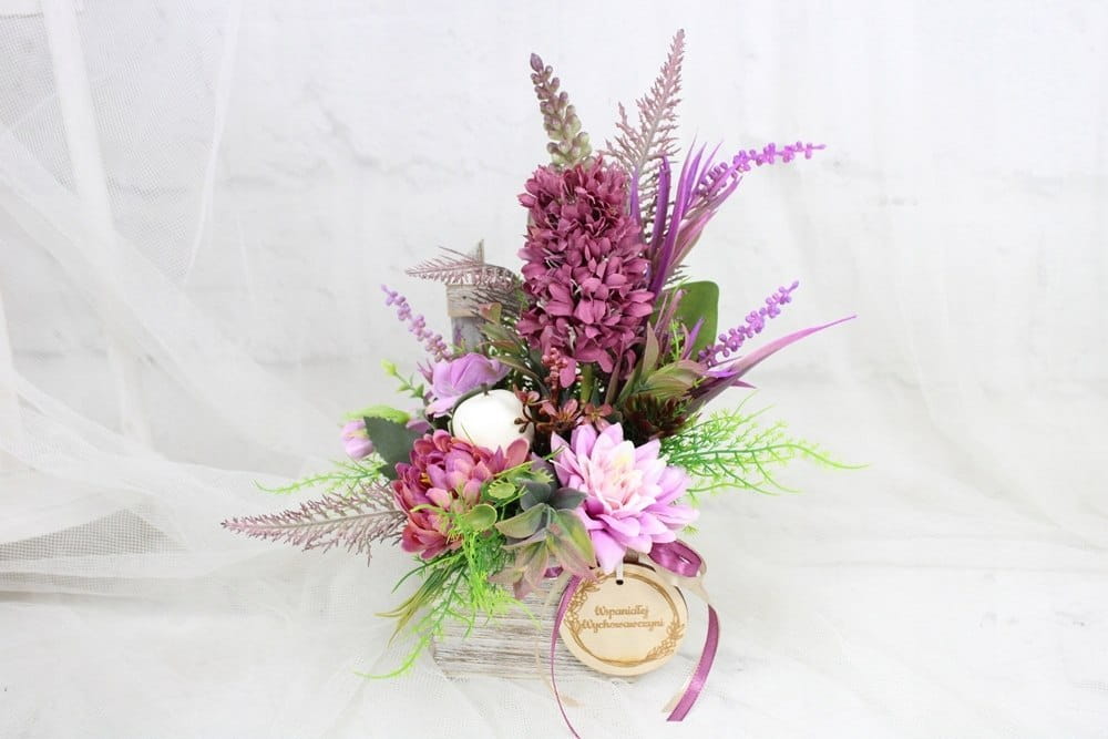 Wyjątkowa i elegancka kompozycja, wspaniały upominek na Dzień Nauczyciela. Nasza ręcznie wykonana kompozycja kwiatowa to piękny i trwały sposób, aby wyrazić wdzięczność i szacunek.