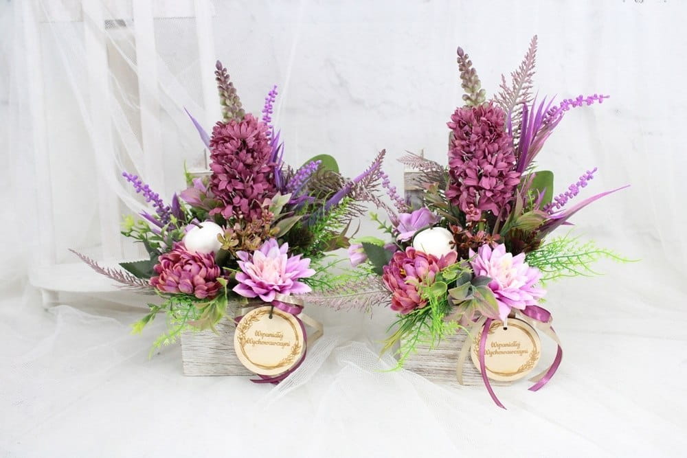 Kompozycje wykonuje ręcznie z tego względu układ czy rodzaj ozdób i dodatków może się nieco różnić od zdjęć. Zawsze jednak zostaje zachowany styl i kolorystyka.