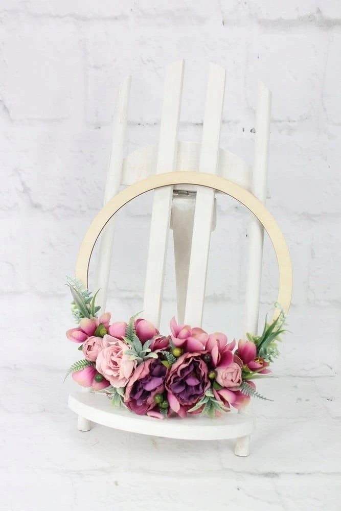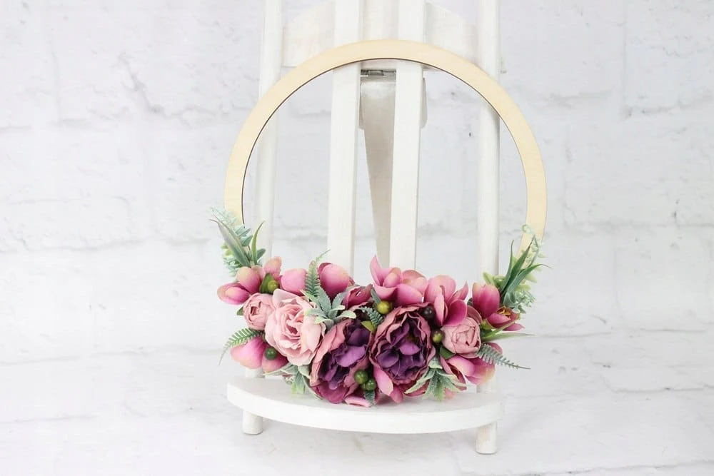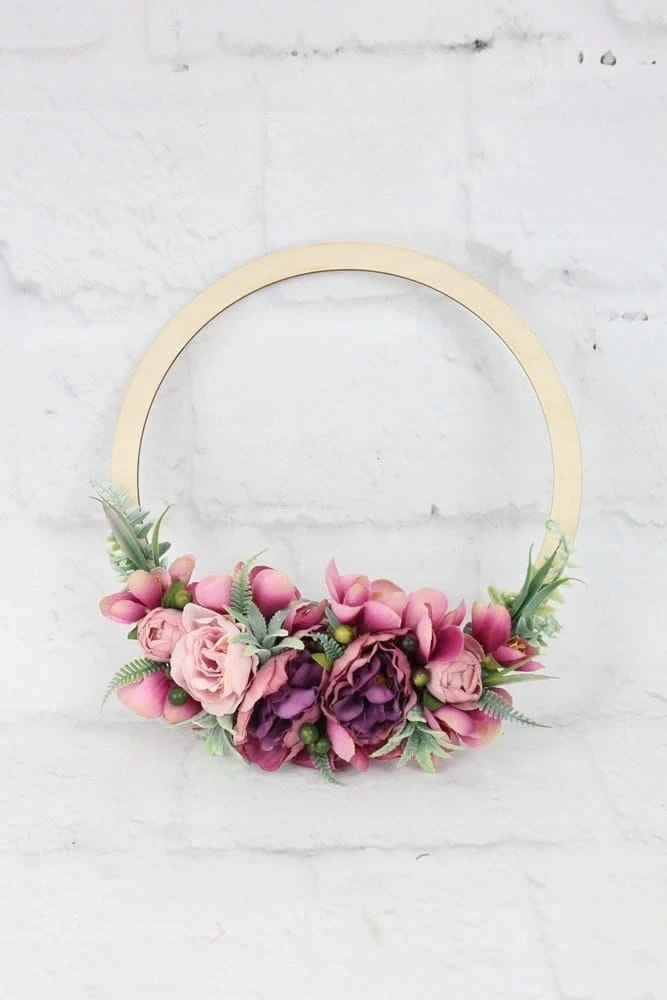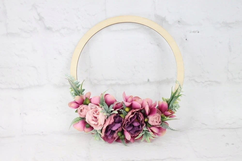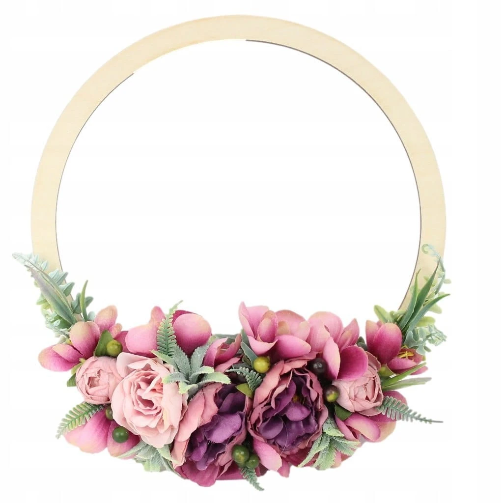 Obręcz drewniana wianek kwiatowy dekoracja domu