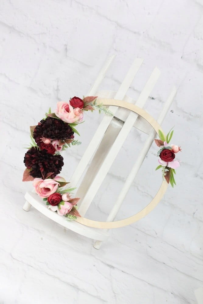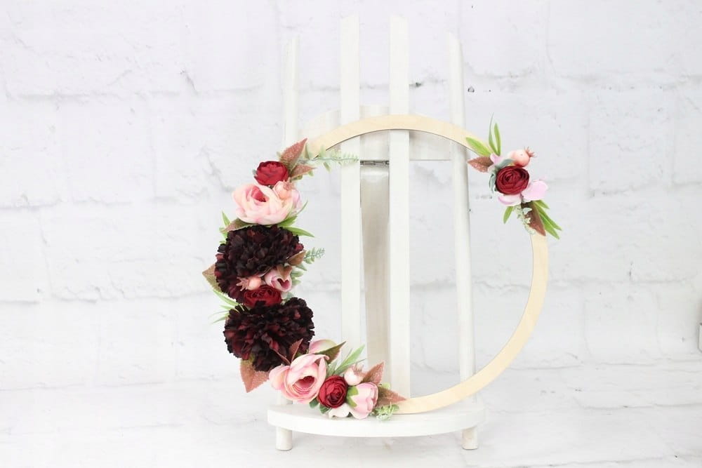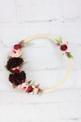Obręcz drewniana wieniec kwiaty ozdoba domu BORDO