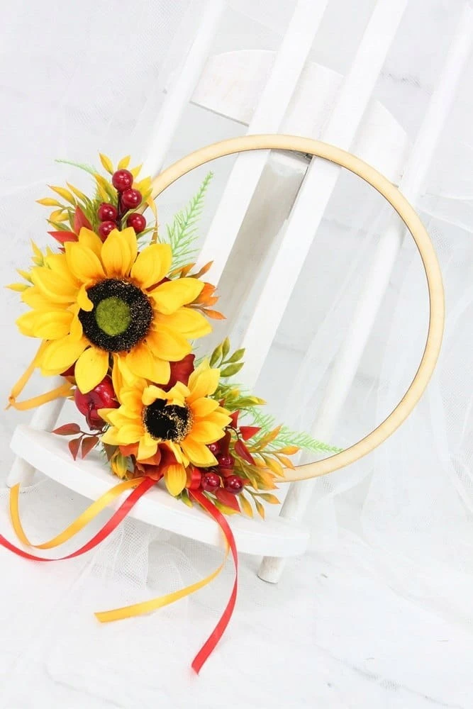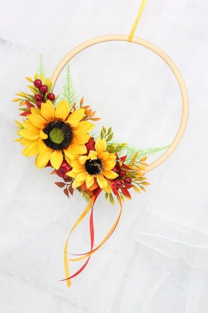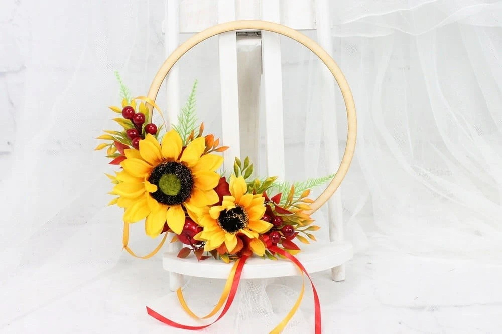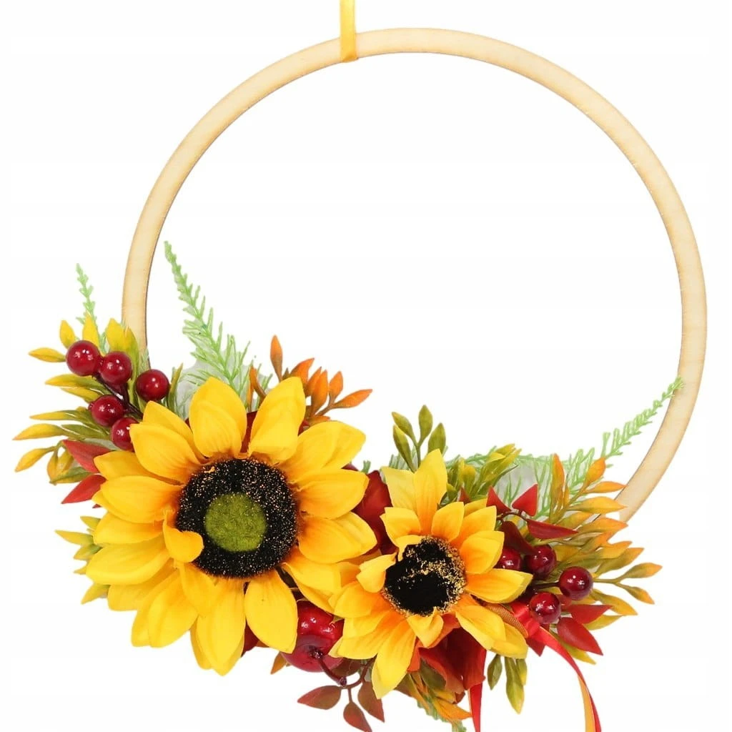 Obręcz wianek jesienny słoneczniki dekoracja drzwi domu okna