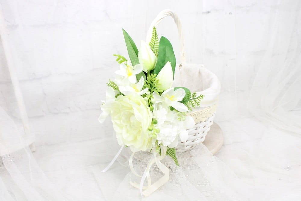 Zamocowanie dekoracji na koszyku jest niezwykle proste i intuicyjne, cieńszą i krótszą tasiemkę należny zawiązać obok uchwytu koszyczka, natomiast szerszą i dłuższą należy obwiązać dookoła koszyka zawiązując na końcu kokardkę.