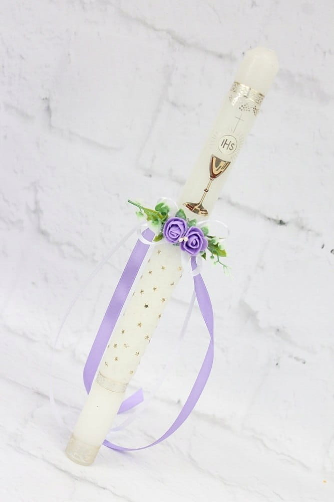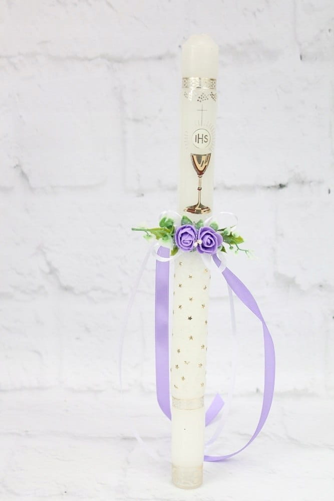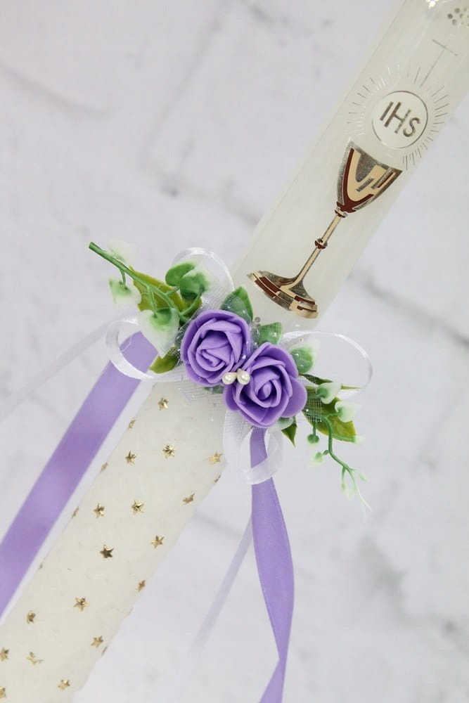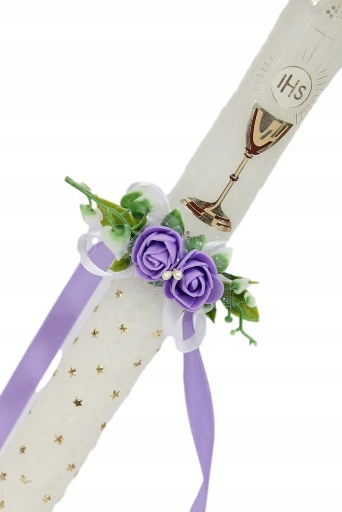 Ozdoba na świecę delikatna stroik komunia FIOLET