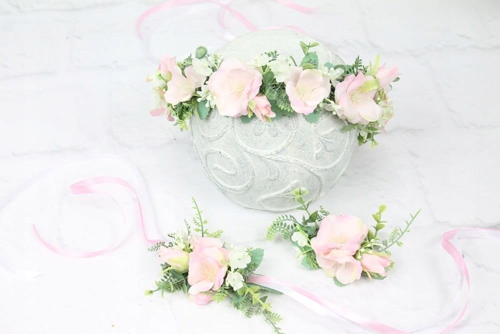 W ofercie mamy również do kompletu równie piękny wianek, profitkę na świecę oraz bransoletkę na rękę.