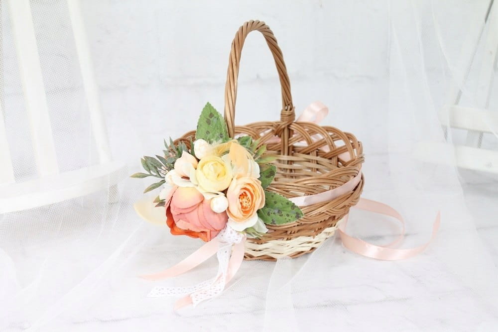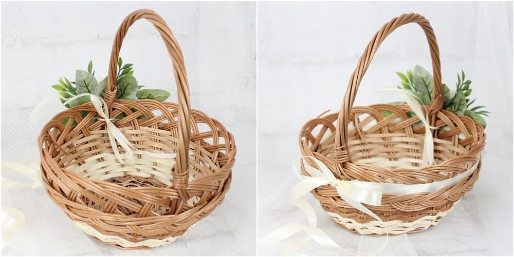 Zamocowanie dekoracji na koszyku jest niezwykle proste i intuicyjne, cieńszą i krótszą tasiemkę należny zawiązać obok uchwytu koszyczka, natomiast szerszą i dłuższą należy obwiązać dookoła koszyka zawiązując na końcu kokardkę.