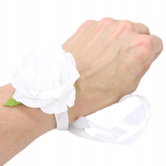 Róża na rękę kotylion lub przypinka do butonierki satynowa BIEL