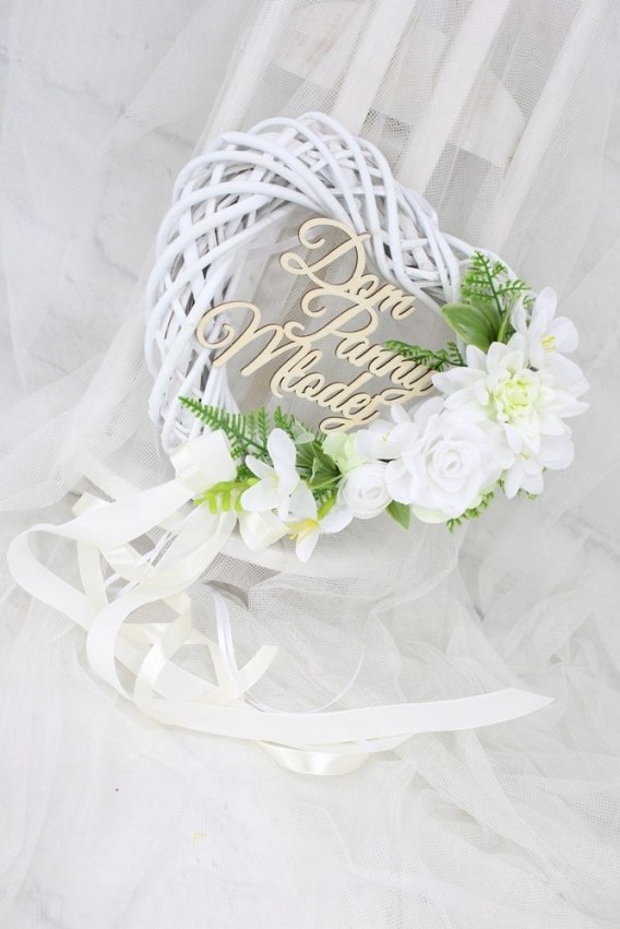 Dom Pana Młodego, Dom Panny Młodej, Dom Państwa Młodych, Witamy Gości Weselnych (po zakupie proszę o informację z jakim napisem wykonać wianek)