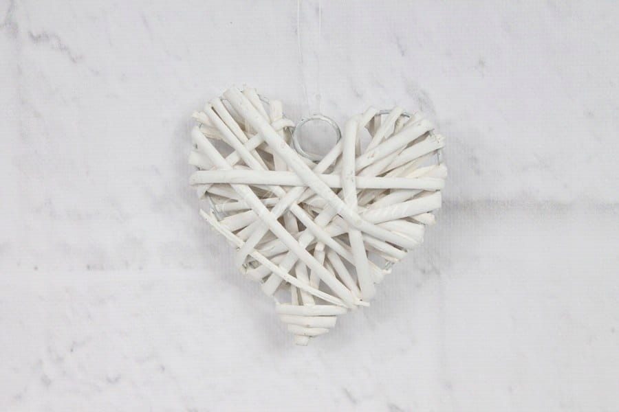 Serduszko wiklinowe wiklinowe białe.