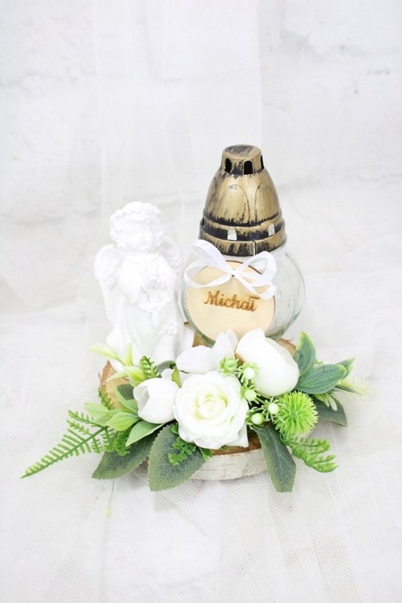 • Stroik kompozycja aniołek na grób ZNICZ z imieniem