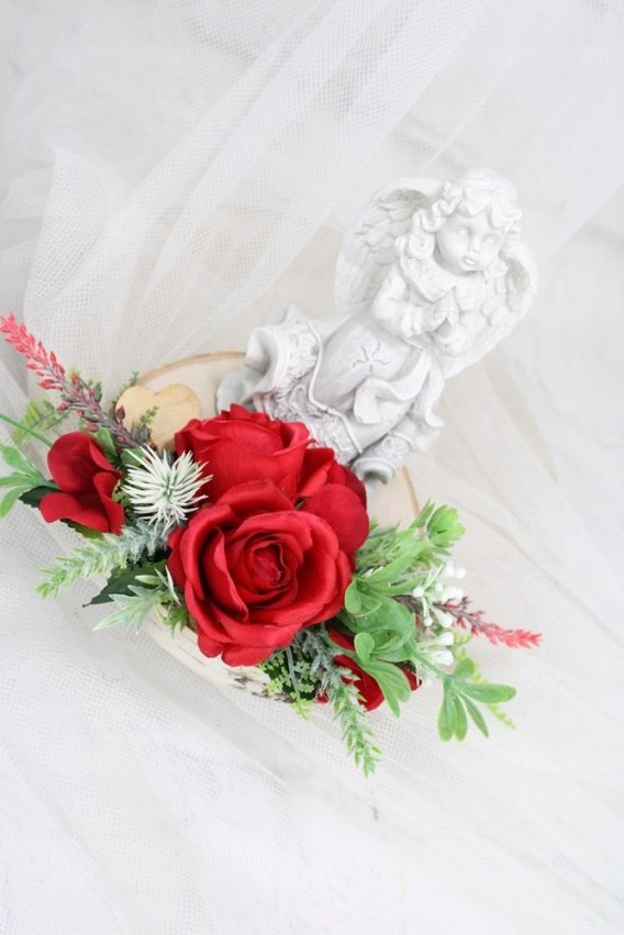 Wyjątkowości tej kompozycji dodaje piękny szary aniołek.