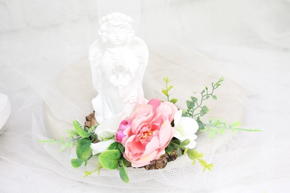 Wyjątkowości tej kompozycji dodaje piękny biały aniołek.