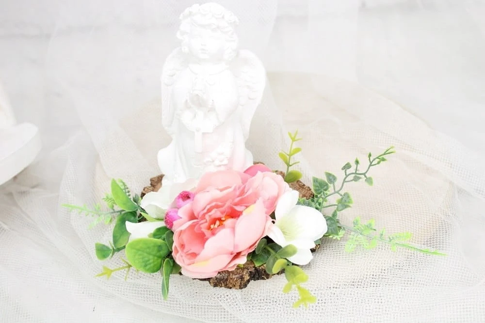 Stroik kompozycja na grób wiązanka ANIOŁEK plaster drewna