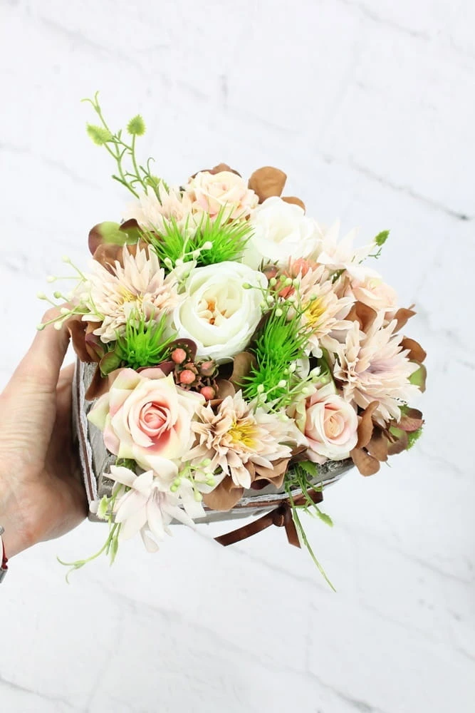 Niezwykle pięknie będzie się prezentowała na grobie lub w kolumbarium. Kompozycja jest obciążona, jest zatem stabilna.