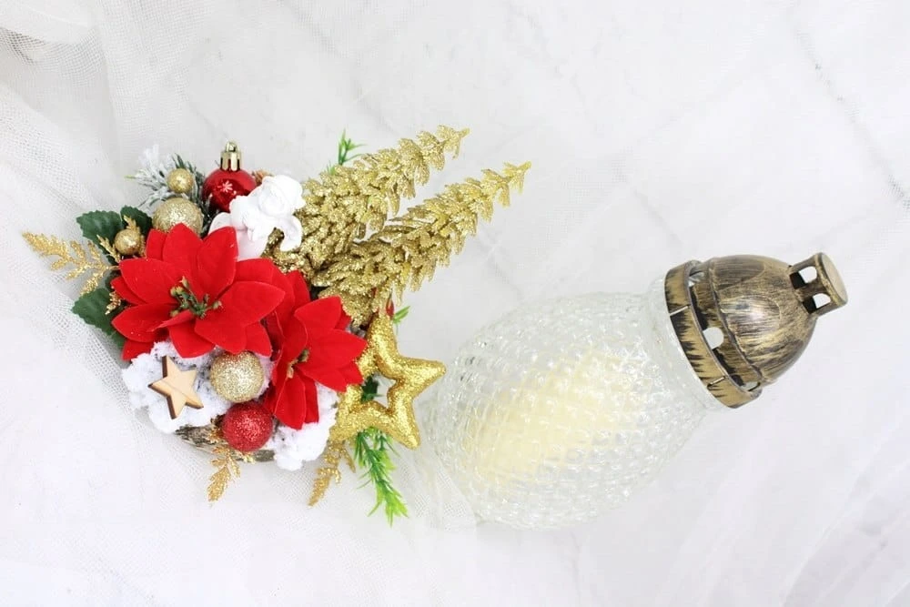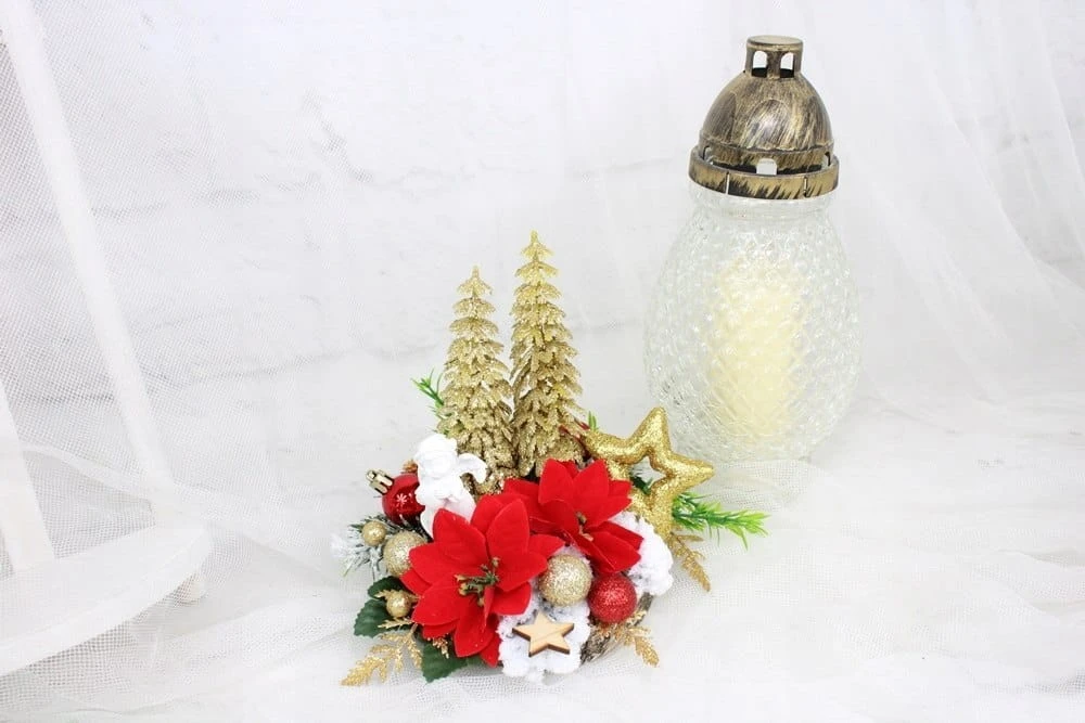 Stroik na grób złoty świąteczny aniołek choinki kolumbarium