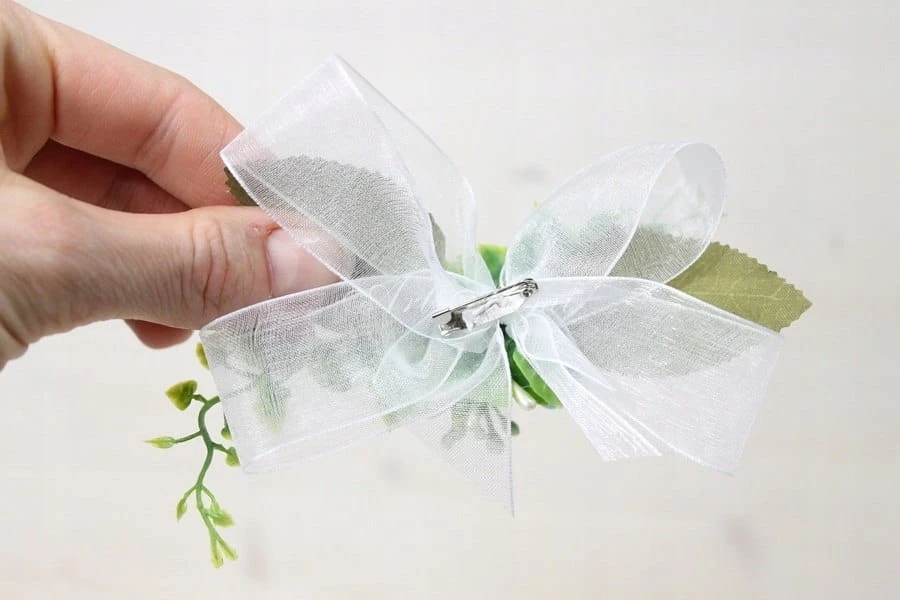 Dodatkowo posiada z tyłu piękną szyfonową kokardkę.