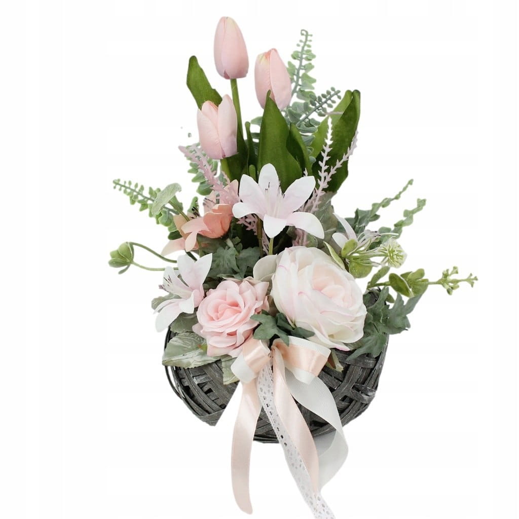 Stroik wiosenny tulipany kompozycja na stół dekoracja domu PUDROWY RÓŻ