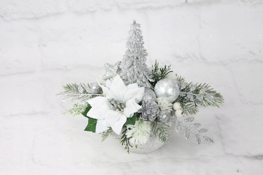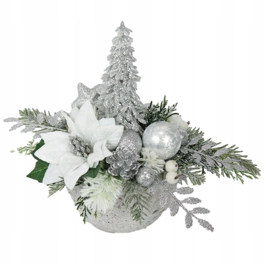 Świąteczny stroik SREBRNY dekoracja domu na święta