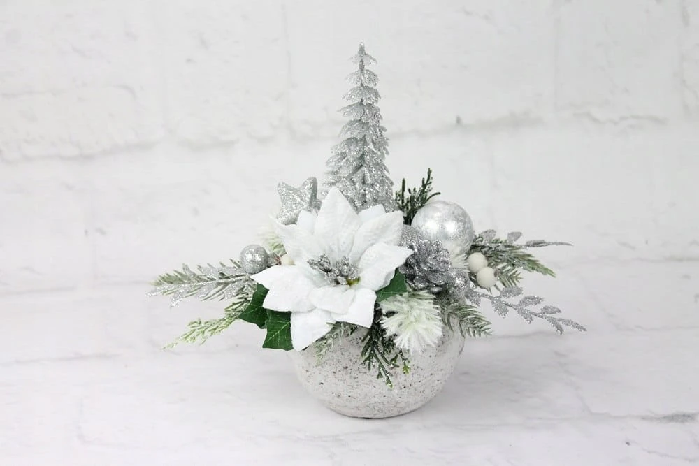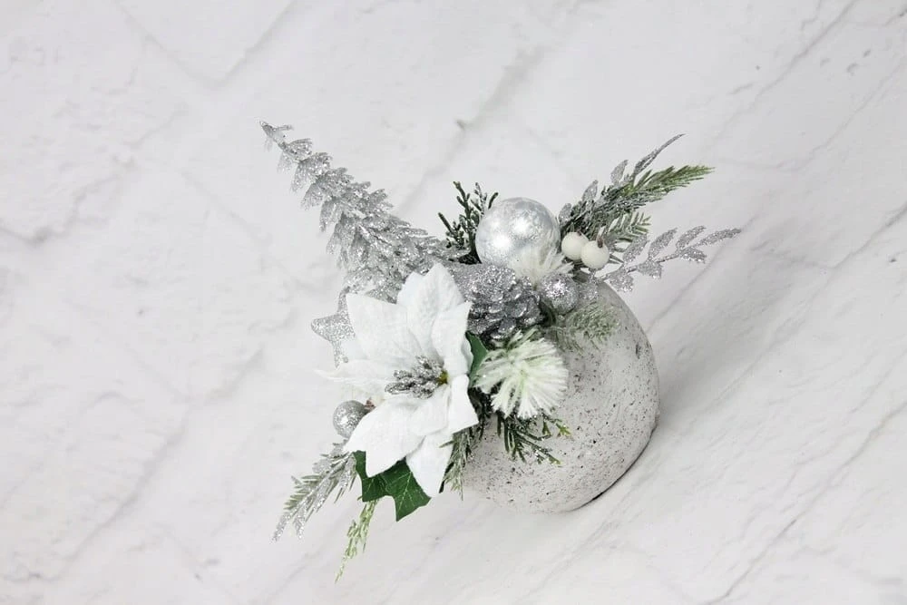 Piękny i niesamowicie stylowy świąteczny stroik wykonany w ceramicznej donicy.