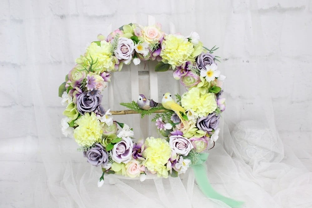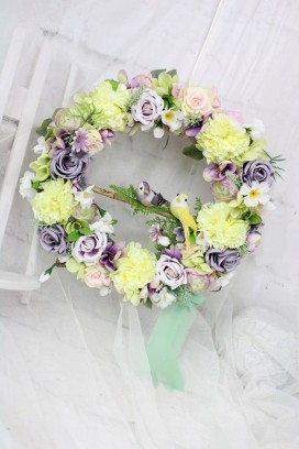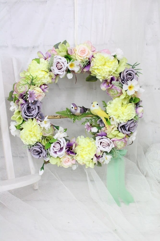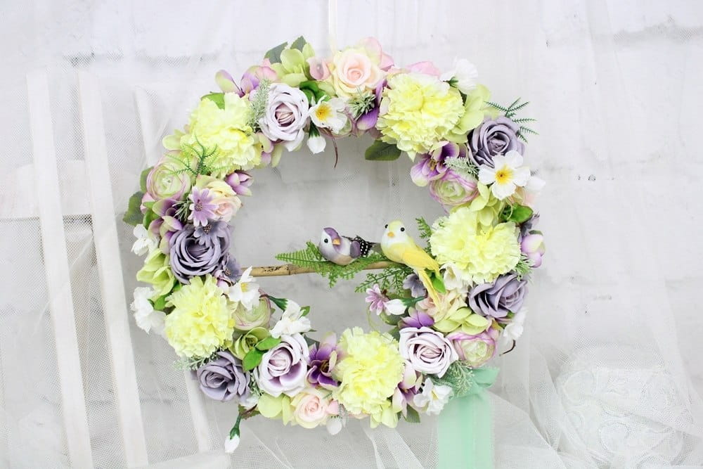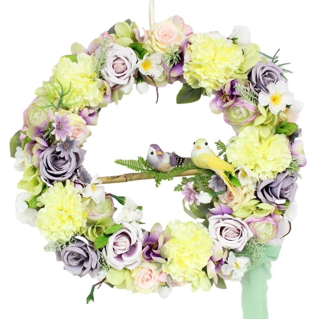 Wianek dekoracyjny kwiatowy na drzwi ozdobny wieniec do domu PTASZKI