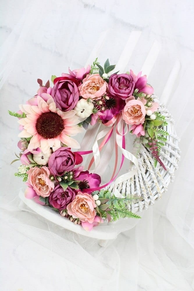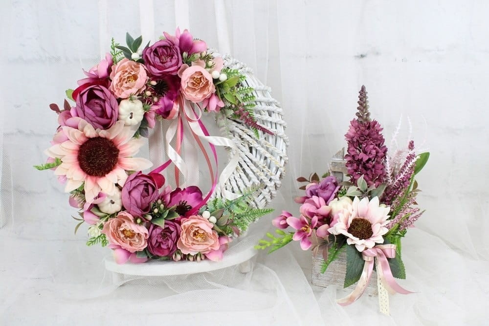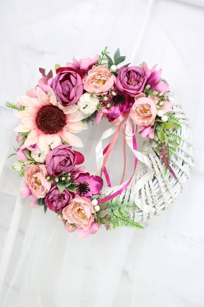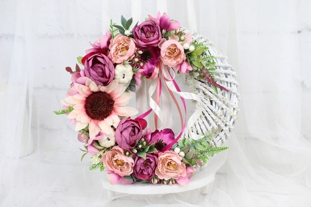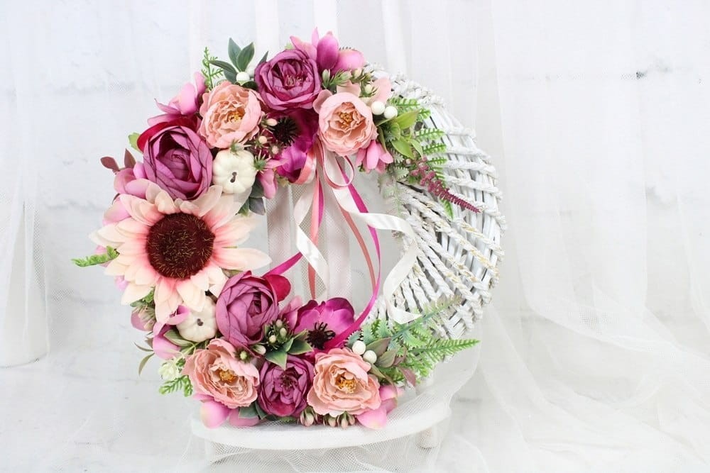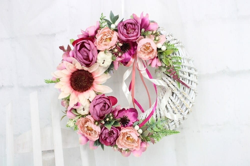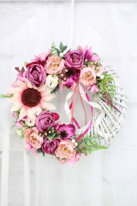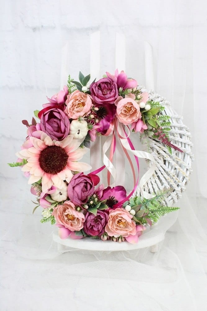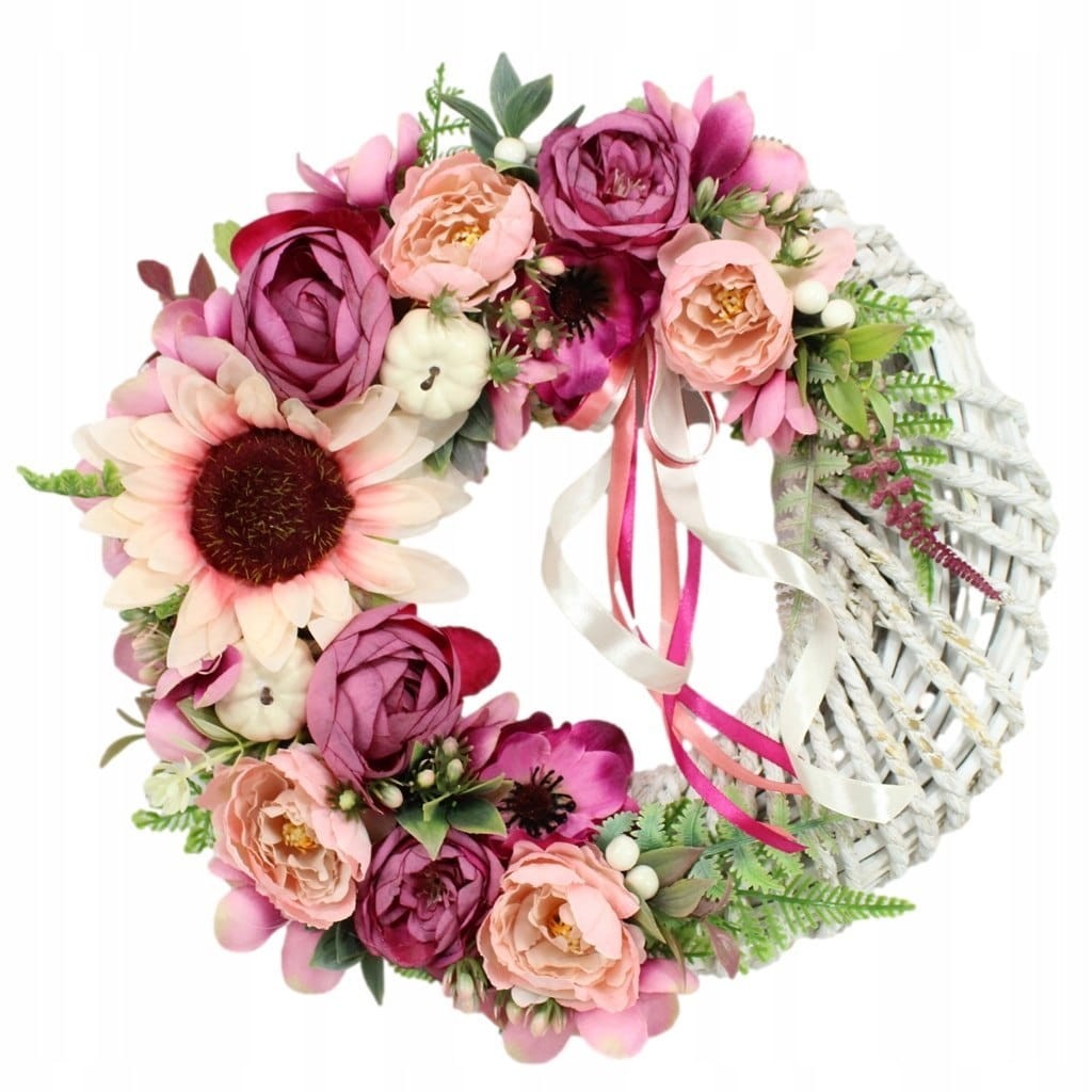 Wianek jesienny dekoracja drzwi stroik wieniec kwiatowy sylowy RÓŻ