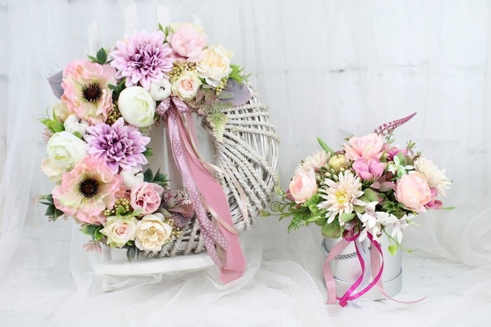Kompozycje wykonuje ręcznie z tego względu układ czy rodzaj ozdób i dodatków może się nieco różnić od zdjęć. Zawsze jednak zostaje zachowany styl i kolorystyka.