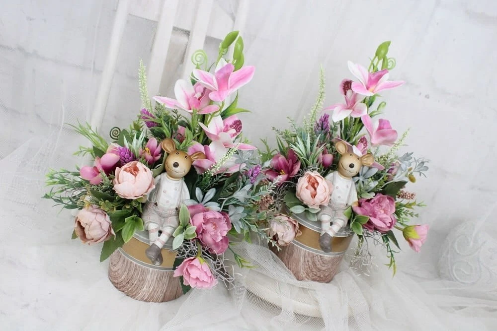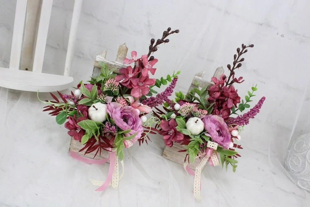 Kompozycje wykonuje ręcznie z tego względu układ czy rodzaj ozdób i dodatków może się nieco różnić od zdjęć. Zawsze jednak zostaje zachowany styl i kolorystyka.